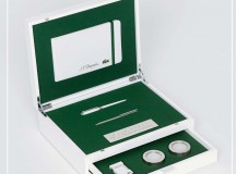 La marque S.T. Dupont offre à un magnifique coffret contenant un briquet « ligne 2 », deux bougies, un carnet et une parure de stylos.