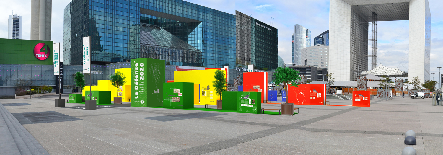 Le 24 juin 2013, l’esplanade de la Défense accueille l’exposition « La Défense 2020, une nouvelle vision des espace publics » organisée par Defacto.