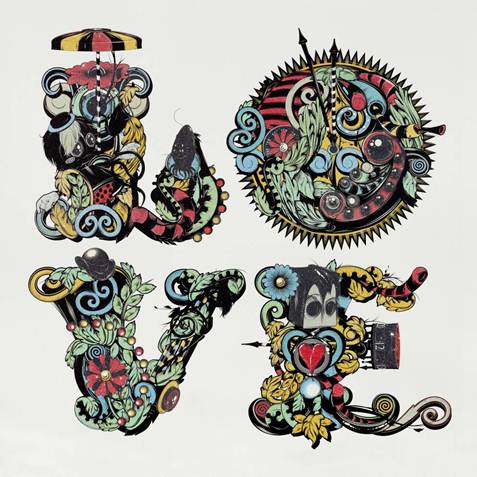 PHUNK, L.O.V.E (Summer), Soie sur toile avec diamants, 120 x 120cm, 2013,