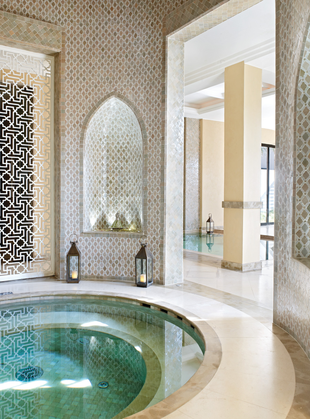 Installé dans un jardin bercé par le chant des oiseaux, le Neroli Spa Pavilion s’adresse aux couples et aux amateurs de soins de qualité. Le lieu, qui tire son nom de la fleur d’oranger qui embaume l’air, est accessible par une entrée discrète. Offrant un cadre luxueux, il compte deux magnifiques suites ainsi qu’un hammam contemporain. Mille et Une Nuits, l’un des programmes de soins proposés, consiste en un hammam, suivi d’un rituel traditionnel à base d’huiles essentielles. Après une exfoliation au safran, au grenat et à la rose, il se poursuit par un enveloppement à la fleur d’oranger, avant de se conclure par un soin du visage à l’huile de rose, de jasmin et de fleur d’oranger. D’autres soins typiques du hammam sont à apprécier en solo, comme le Plaisir de Marrakech, le Hammam en Douceur, ou le Rituel Marocain.