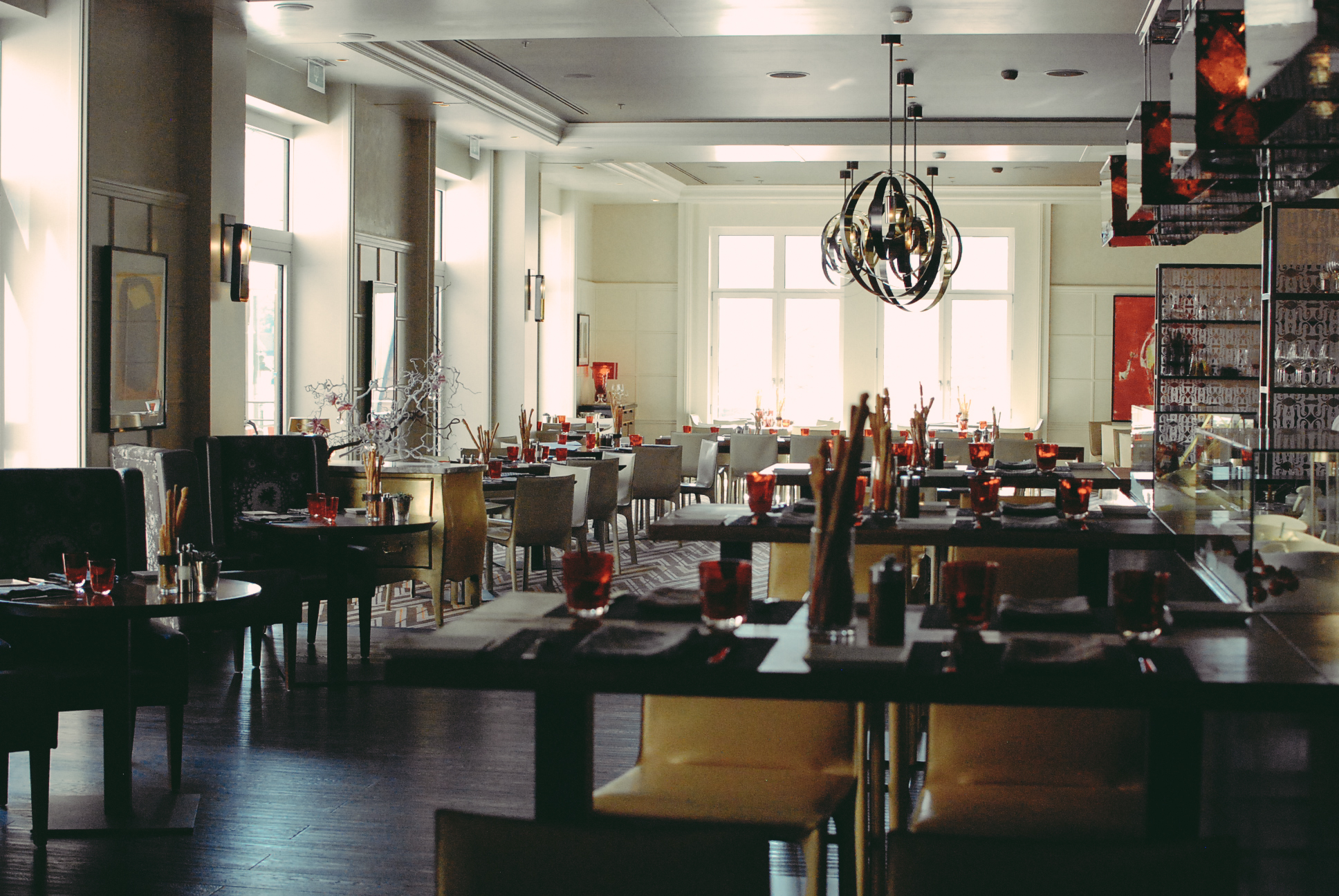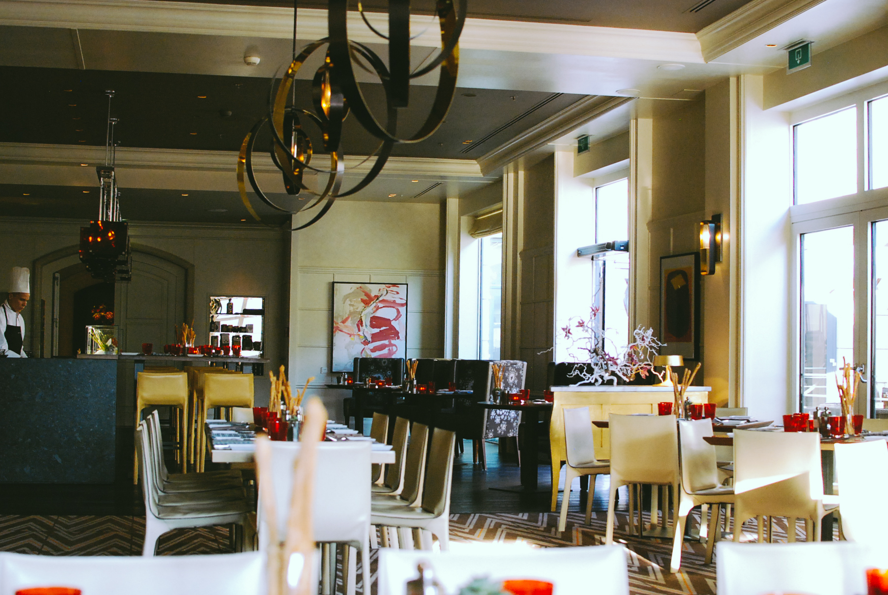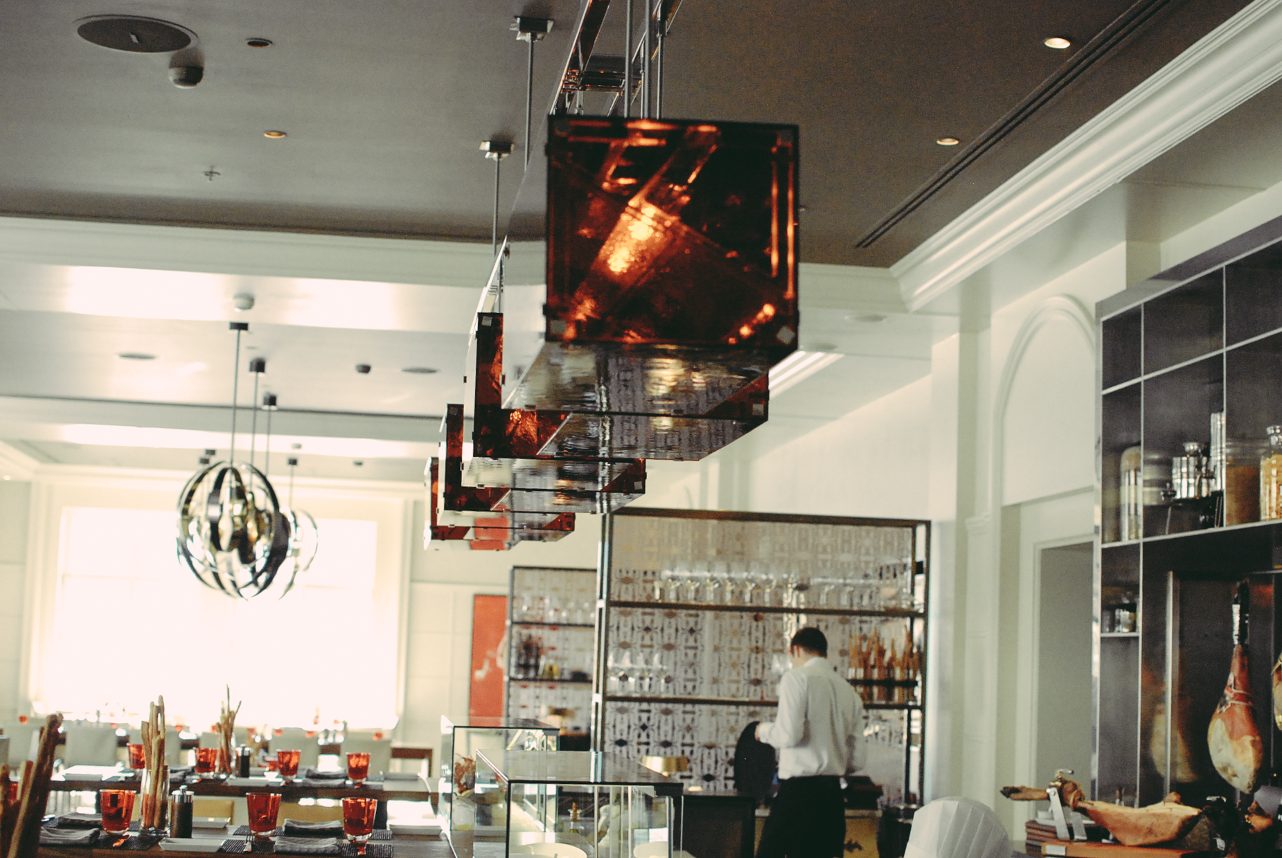 Le concept CottoCrudo s’inspire de l’architecture de Prague. L’objectif était d’offrir un contraste entre la modernité du bar et des comptoirs culinaires et le cadre patiné, chargé d’histoire. Le nouvel agencement permet une synergie entre le restaurant, le lounge et le bar, qui forment désormais un espace multi facettes. Très soignée, la décoration mise sur quelques détails spectaculaires, comme une machine à trancher Berkel, des banquettes en cuir et des lampes signées Preciosa. « Nous avions envie que le comptoir culinaire fasse l’effet d’une Maserati garée au beau milieu d’une salle à manger, » explique Mark Wilson, Directeur studio d’EDG, le cabinet d’architecture à l’origine du concept.