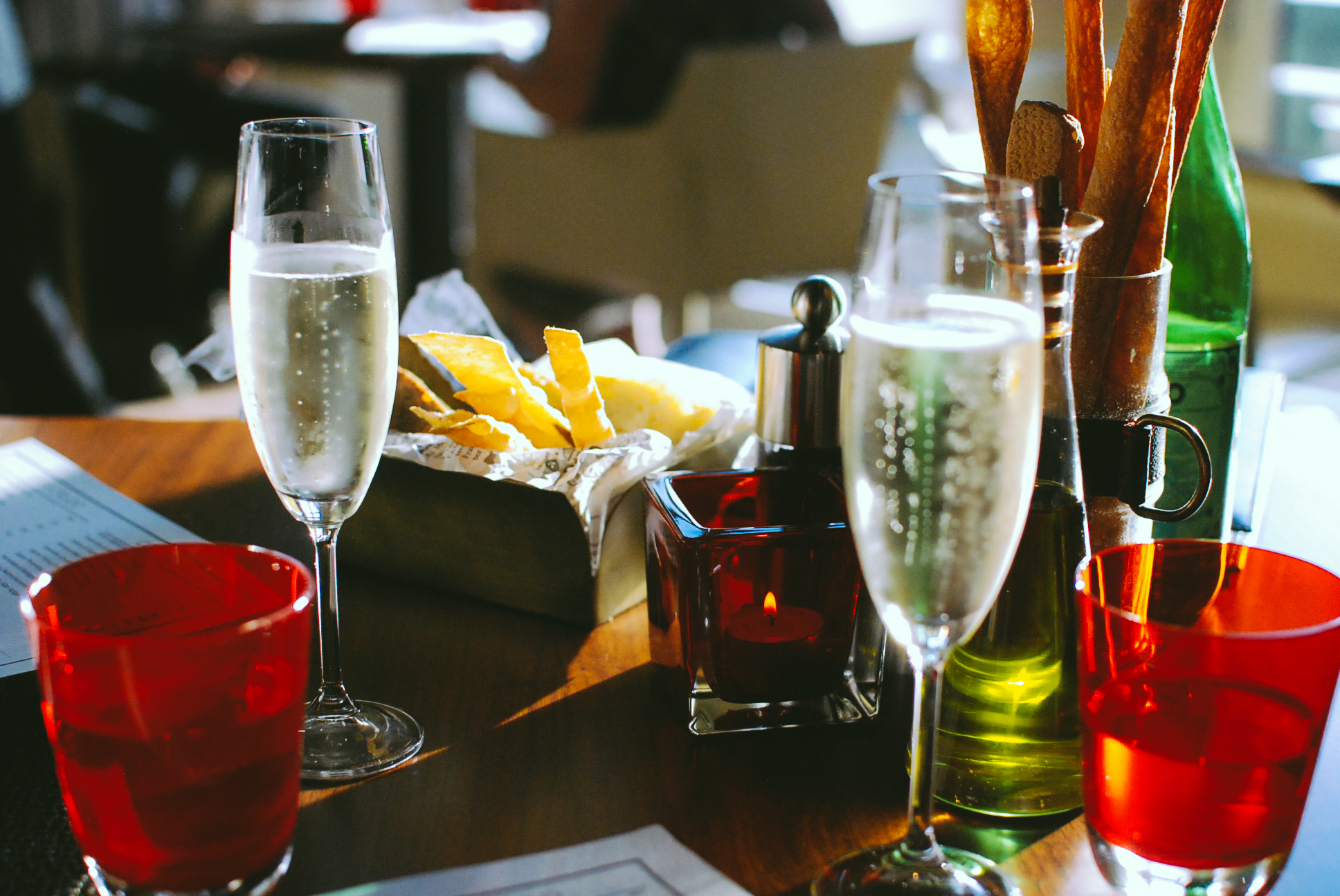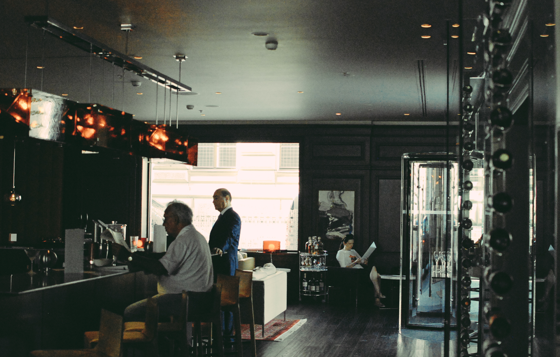 La carte des vins comporte plus de 300 références, dont 26 vins qui peuvent être servis au verre et dans une mezzo (carafe italienne). Elle est complétée par une gamme éclectique de cocktails, dont certains classiques revisités avec une touche italienne ou tchèque.