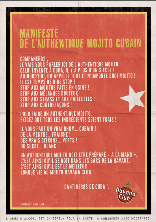 Depuis les années 1990, le Mojito est décliné par les barmen français. Mais qui connaît l’origine du savant mélange à base de rhum élaboré dans tous les bars du monde ? Un retour aux sources est nécessaire pour comprendre le succès du cocktail Mojito. Il est né sur l’île de Cuba, tout comme le rhum Havana Club. Ainsi, à travers leur origine géographique commune, le lien entre la marque cubaine et le cocktail cubain s’est imposé dans plus de 80 pays dans le monde.