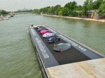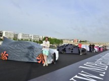 Mercedes-Benz France crée l’événement pendant la Fashion Week Parisienne en faisant défilés six modèles du nouveau coupé quatre portes CLA entièrement redorés sur la seine.