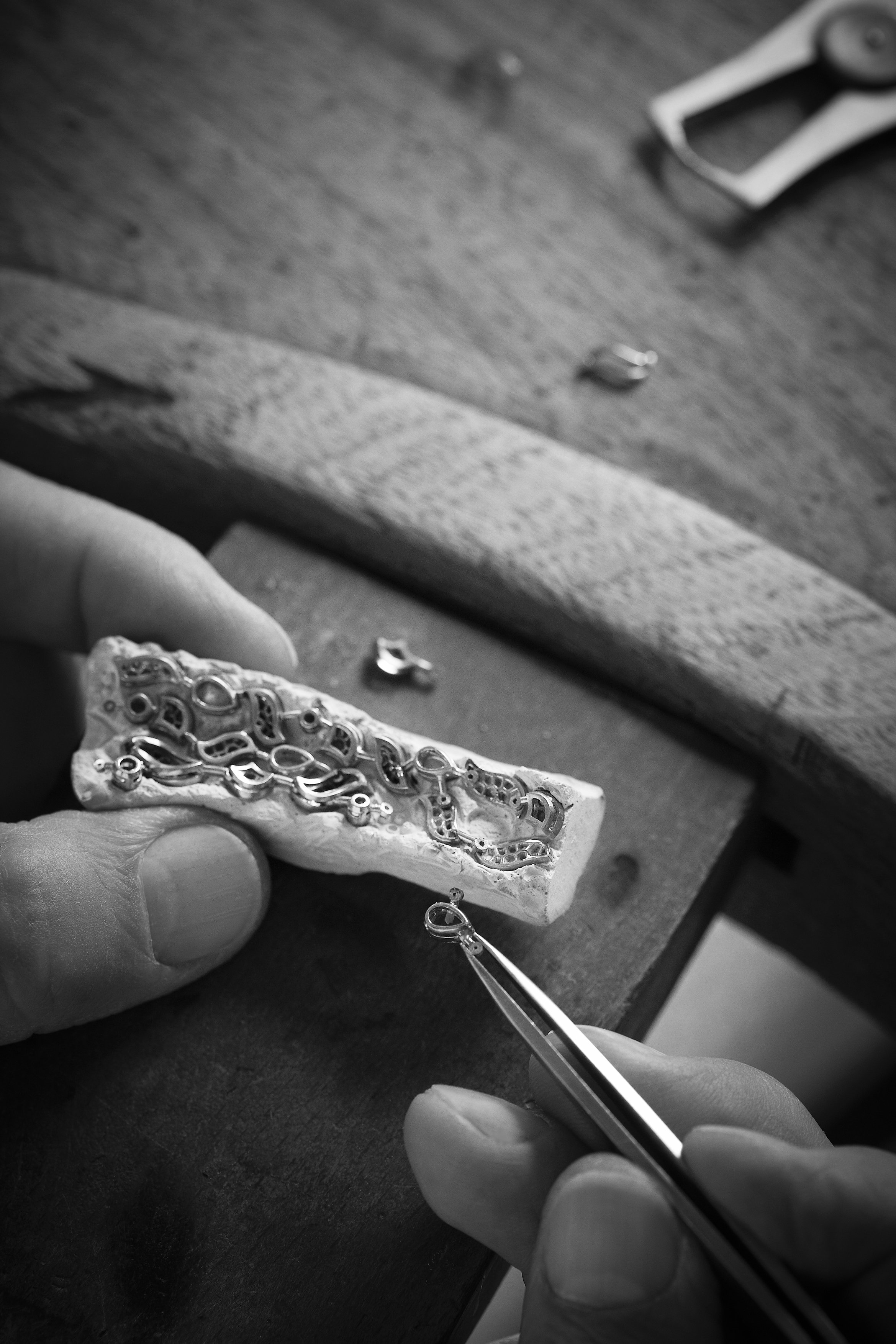 Le motif « Lion Vénitien » en or blanc et diamant célèbre le lien indéfectible entre Gabrielle Chanel et la Sérénissime. Motif central de ces trois parures, une majestueuse tête de lion, vient ponctuer des colliers, des pendants d’oreilles, des bracelets, des bagues, ainsi qu’une montre à secret dont une tête de lion entièrement sertie de diamants pivote pour révéler le cadran.