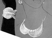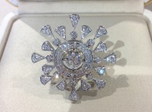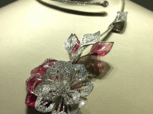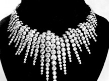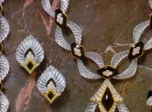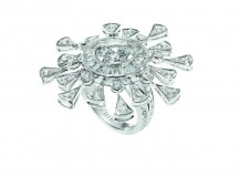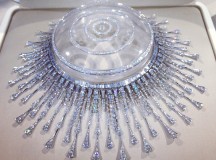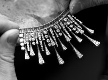 « A quoi sert le soleil si on a les yeux fermés ? » écrivait Salvador Dali. Pour goûter la magie de cette parure, il faut en observer patiemment l’assemblage. L’éclat du diamant est ici renforcé par la variété des tailles. Le tour de cou en baguettes est comme auréolé de rayons foisonnants qui alternent diamants tapers, princesses, baguettes et ronds dans un savant agencement. Cet enchâssement minutieux doublé d’une extraordinaire souplesse au porté – tous les motifs sont emmaillés un par un de manière à être mobiles – contribue au caractère unique de cette parure qui a requis plus de 1000 heures de travail.