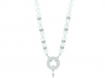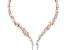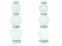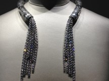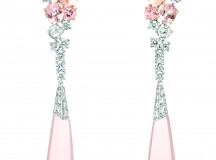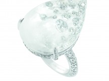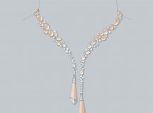 Le sautoir est composé de plus de 80 briolettes de cristal de roche, tantôt polies, tantôt dépolies, et cet éclat est accentué par des « slices » de diamants intercalés de façon aléatoire pour donner l’impression d’une parure en mouvement.
