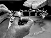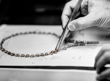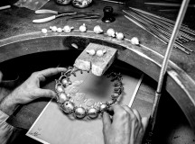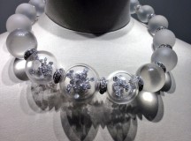 Pour contrer le poids du cristal de roche et rendre ainsi légère cette matière dense mais néanmoins très fragile, les 19 bulles du collier ont été patiemment évidées, avant d’être dépolies et polies, ce qui a requis de longues heures de travail.