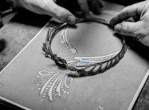 Chef d’œuvre de virtuosité, la parure Paon de Lune se prête à la métamorphose par son multiporté et par ses reflets irréguliers et changeants. Peut-être est-ce parce que le paon a si souvent inspiré la Maison. Le défi était donc ici de renouer avec la tradition, tout en lui redonnant sa pleine lumière, sa rareté, ses lettres de noblesse, son rayonnement unique.