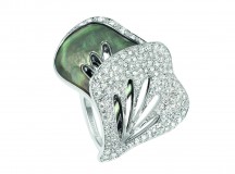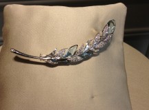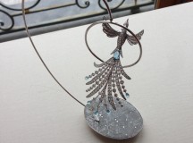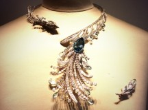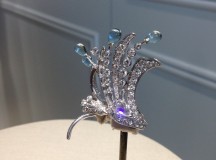Chef d’œuvre de virtuosité, la parure Paon de Lune se prête à la métamorphose par son multiporté et par ses reflets irréguliers et changeants.