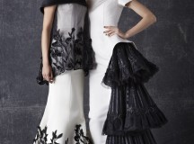 Chez Georges Chakra, l’hiver se pare de vertus aux accents résolument sincères : de l’éclat plutôt que du clinquant, du rêve plutôt que des illusions, de la sensualité plutôt que du sensationnel. A l’honneur, une séduction qui a l’élégance de faire corps, âme et conscience avec son temps, vestiaire d’une femme du monde, oui, mais du monde