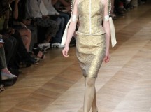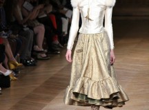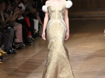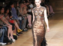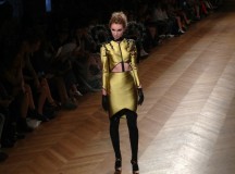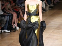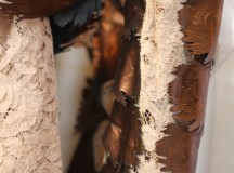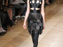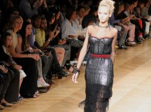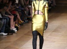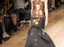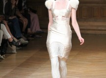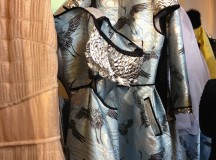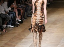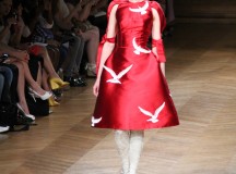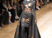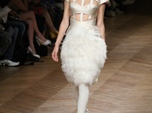 On se prend à rêver à une femme oiseau sortie de la mythologie ou d’un ballet du lac des cygnes. Cette femme n’en est pas moins forte et conquérante accessoirisée de griffes d’oiseau et ornée de matières métalliques faisant penser à des armures.