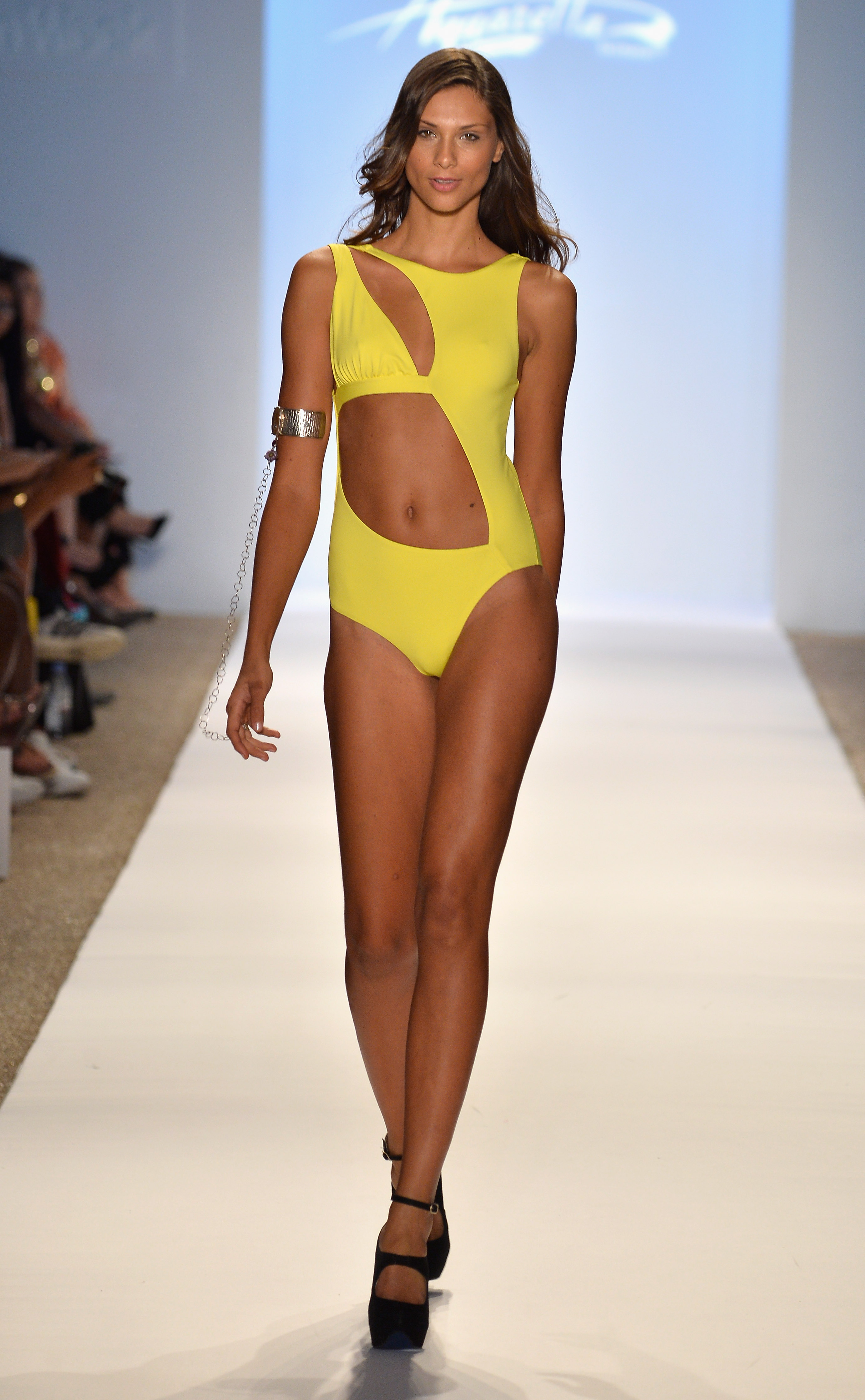 - A model walks the runway at the A.Che Swimwear/Aguaclara Swimwear/Aquarella Swimwear/Caitlin Kelly Swimwear show at Cabana Grande at the Raleigh on July 22, 2013 in Miami, Florida.