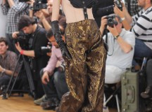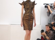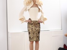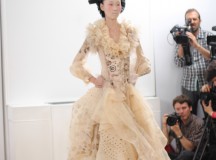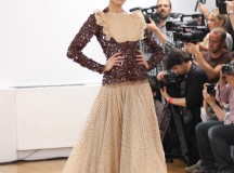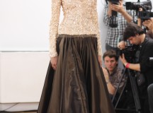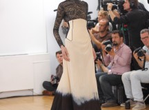 Julien Fournié nous a présenté il y a peu sa collection Hiver 2013-2014 Couture. Une collection appelée Premières Chimères qui rend hommage à Jules Verne et au voyage. L’inspiration se puise dans les années 30, les samouraïs, le 19ème siècle, le tribal, c’est un véritable voyage auquel Julien Fournié nous invite. Les silhouettes sont près du corps, les teintes sont dorées, crème et ivoire. Une collection puissante, pour des femmes assumant leur force et leur féminité retrouvée.