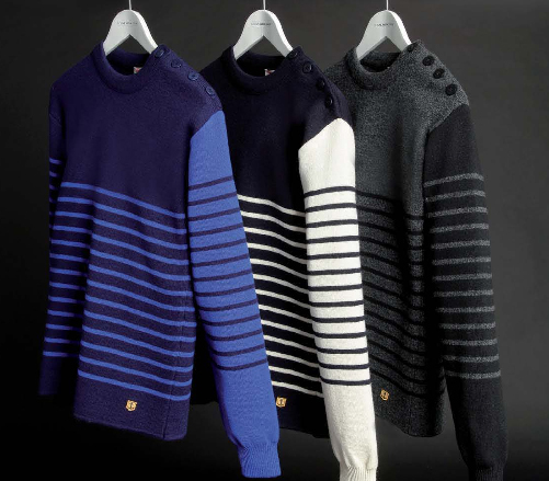 L’emblématique marque Bretonne à marinière, réinterprète pour Menlook son iconique pull marin, proposant trois marinières à la manche gauche contrastée.