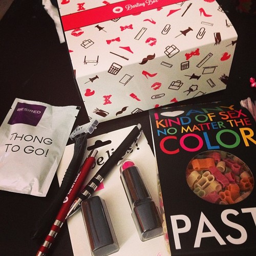 Nous avons pu tester la Darling Box du mois d’Aout, spéciale rentrée ! Avec un rasoir du www.rasoirclub.com, un rouge à lèvres vibrant, des pâtes zizis multicolores, des dès coquins et pleins de conseils sexy.