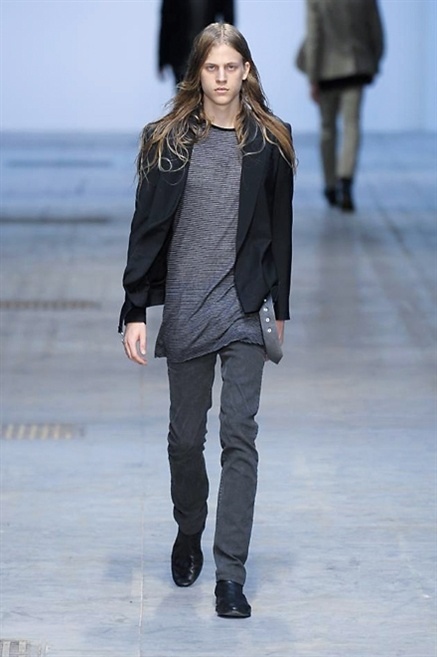 Les ankle boots ainsi que les chemises à plastron sont les subtils clins d’œil à l’inspiration principale. La modernité et l’attitude rebelle sont plus d’actualité : beaucoup de cuir (les blousons de bikers) et dans l’ensemble c’est tout ce que l’on demande d’une collection CoSTUME NATIONAL.