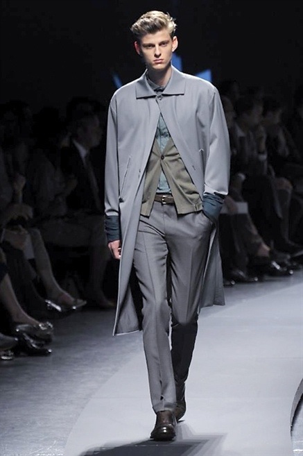 Classicisme dans la affirme la plus haute et le plus délicate : voilà ce qui serait un bon résumé de l’interprétation du Printemps/Été 2014 masculin de Stefano Pilati chez Ermenegildo Zegna. Le color-blocking léger (par bandes), des vêtements d’hiver transposés à la saison estivale, des manches retroussées…tout cela faisait partie de la vision du créateur pour la maison de renomme internationale.