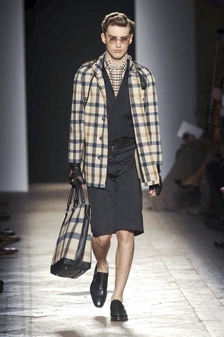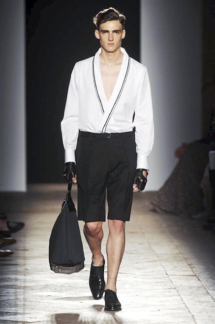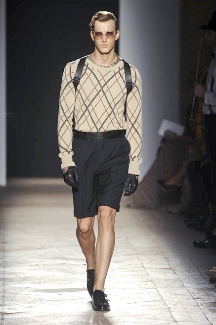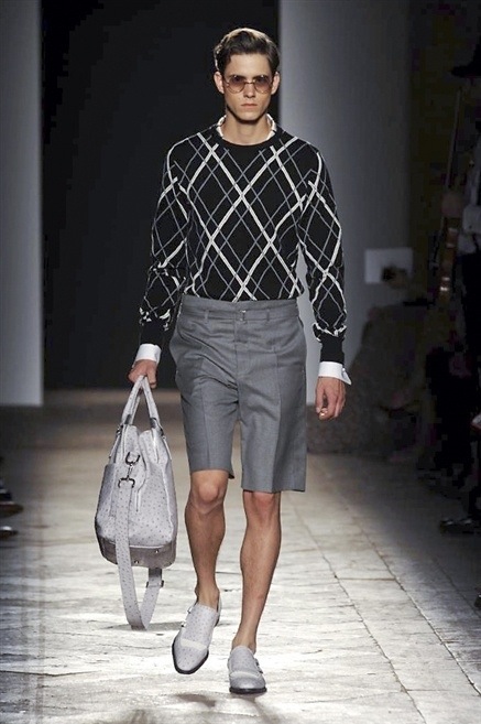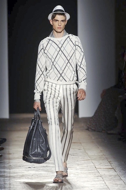 Les tenues estivales sont quant à elles completees par des fedoras en noir et blanc, et des shorts de bain incroyablement moulants (…). Les imprimés font aussi partie de la collection du Prince de Galles au tartan en lassant par les rayures et le monogramme de la maison.
