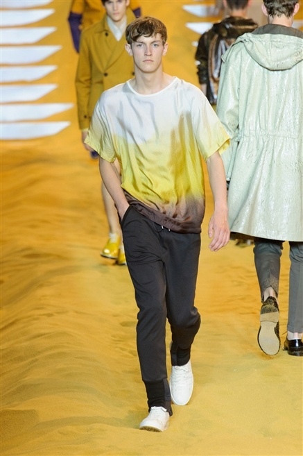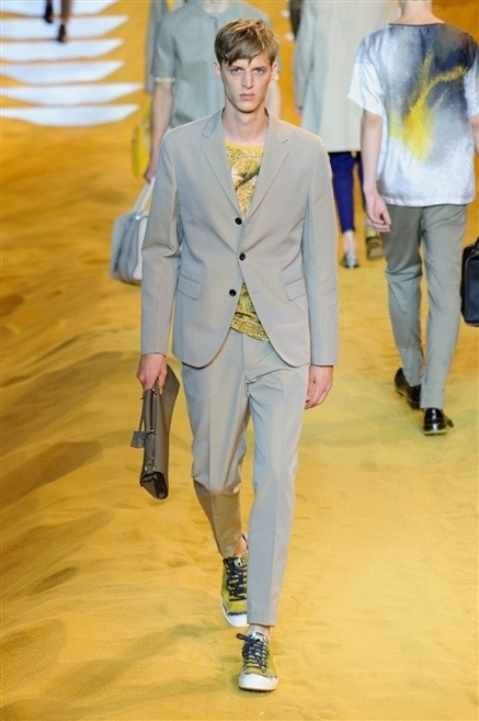 Les mannequins défilant sur le sable composant le podium Fendi était pour le moins risqué, mais visuellement plaisant, les couleurs des vêtements ressortant incroyablement bien.