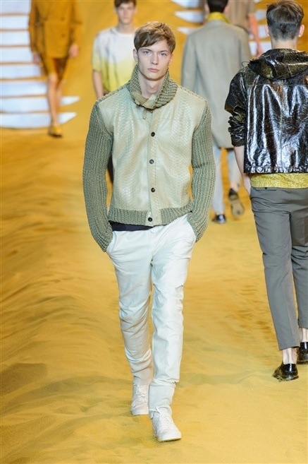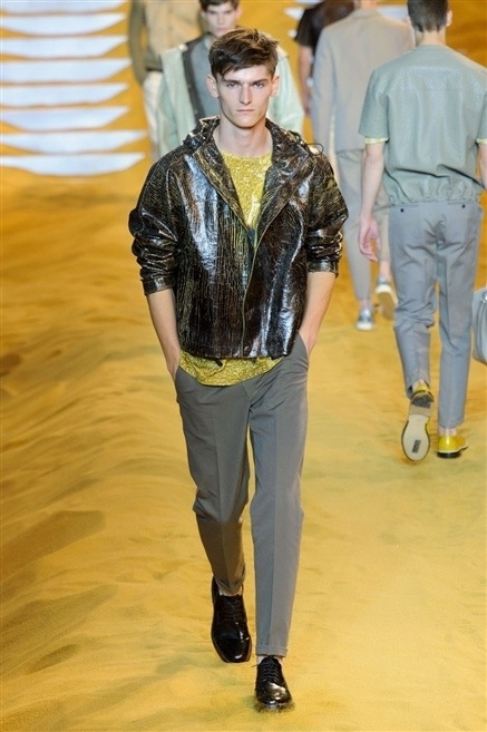 Les mélanges de matières sont aussi à noter notamment sur les vestes ou se mêlent cuir d’autruche et vachette. La fourrure est la spécialité de la maison, mais soyons réalistes, qui serait assez foud pour porter de la fourrure en Été ? La maison prouve son intelligence en transposant son savoir-faire des peaux animales sur le cuir.