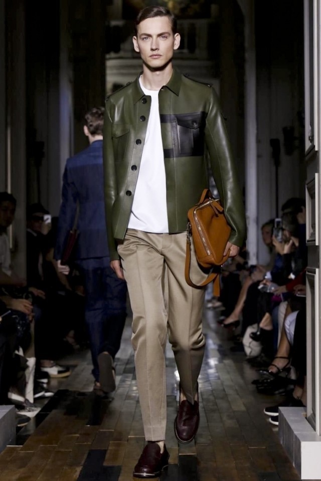 La maison Valentino réinterprète aussi son imprime ‘camo’ qui avait fait fureur la saison passée et on l’entrevoit sur l’une des vestes notamment.