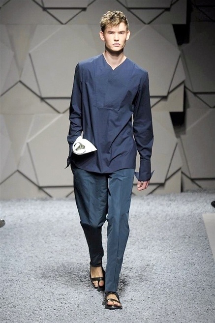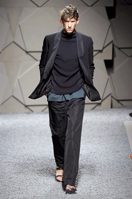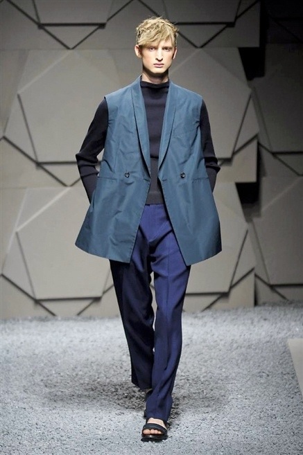Inspirée par le calme et la simplicité des jardins japonais, la collection Printemps/Été 2014 est modeste est élégante. Paul Surridge fait cette saison le choix de nous emmener dans un tourbillon de coupes carrées et pastels subtils se mêlant à des teintes sombres. L’inspiration asiatique ressort surtout sur les chaussures, les fameuses sandales masculines aux accents métalliques.