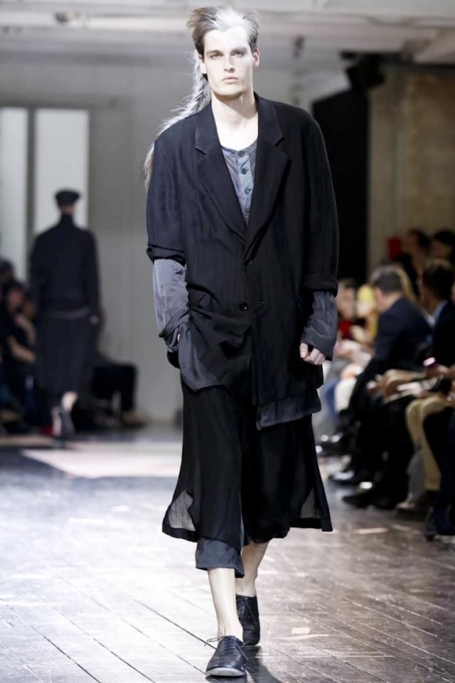 Travaillant les formes et les volumes, Yohji Yamamoto surfe sur la tendance de la saison inspirée par une attitude décontractée. Gardons à l’esprit que ce de Yohji Yamamoto dont il s’agit, et son interprétation reste donc très personnelle.