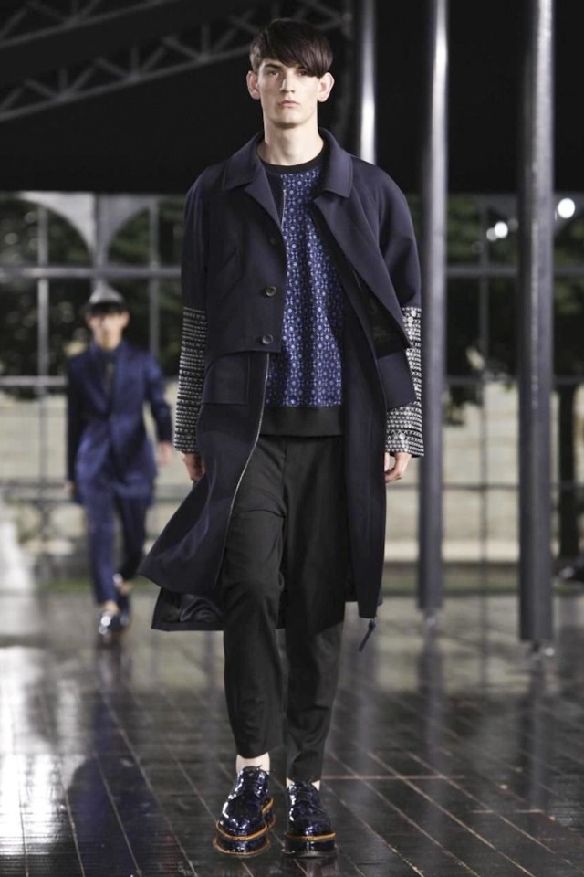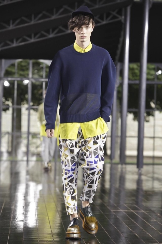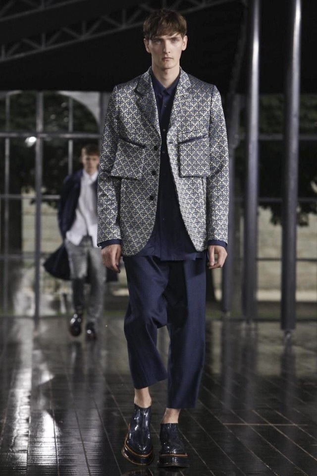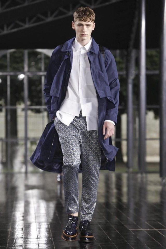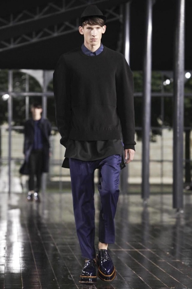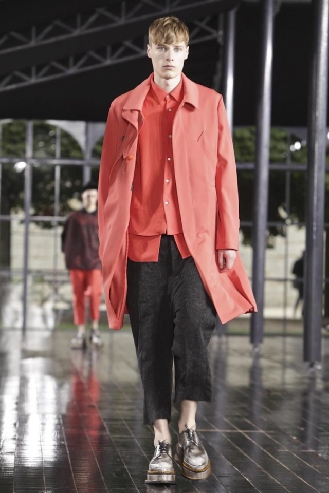 L’attitude de l’homme John Galliano s’étend de classique à détendue. Le créateur expérimente avec les couches et les longueurs inégales ce qui en fait une collection s’adressant aux plus jeunes (le genre a porter des chaussures à plateforme).