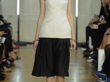 Une toute première à Paris pour la créatrice, qui a présenté la semaine dernière sa collection printemps-été 2014 lors de la Fashion Week. Une collection composée de créations dynamiques et sophistiquée, inspirée par l’univers de l’architecture d’intérieur et des collages des années 70. Les textures nobles comme l’organza de soie légère se mêlent au gaze rayée, lamé grainé, satin mousseux, paillettes sur résille cousues main. Le Noir et le blanc prédominent, rejoint par du bordeaux, grenat, chair pâle et touches métalliques.