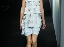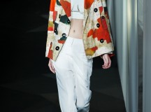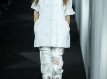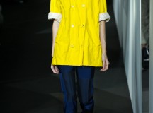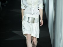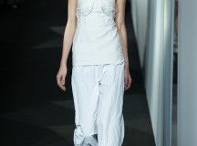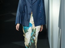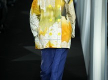 Les références marines sont donc nombreuses dans cette collection, qui a été travaillée principalement avec des matériaux naturels comme le coton sergé et le cuir. Les vestes en cuir sont perforées simplement coupées au couteau. Le blanc prédomine, relevé par du bleu clair, du jaune vif, du rouge, du marine. Côté imprimé on retrouve une série de tons saturés profonds, inspirée par les textures de la mer, assemblée tel un patchwork. Des bijoux en bronze et argent inspirés par des objets marins  viennent éclairer par touche, ses silhouettes immaculées et minimalistes.Une collection Acne Studios printemps-été une nouvelle fois réussie, simple, pure et poétique, comme la mer.