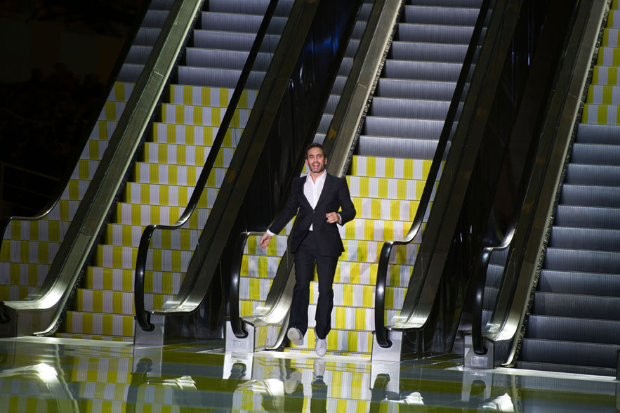 Les rumeurs de départ du directeur artistique star allaient bon train depuis un bon moment dans la petite sphère mode. Les doutes se sont confirmés avec le pessimisme et la tristesse de la collection Printemps/Été 2014 présentée ce matin dans la cour du Louvre en cette dernière journée de fashion week parisienne. Une invitation noire, et un décor extrêmement sombre reprenant tous les anciens éléments des défilés précédents (un carrousel, une fontaine, des ascenseurs, les fameux escalators, un couloir de portes et une horloge rappelant le départ du train Vuitton).