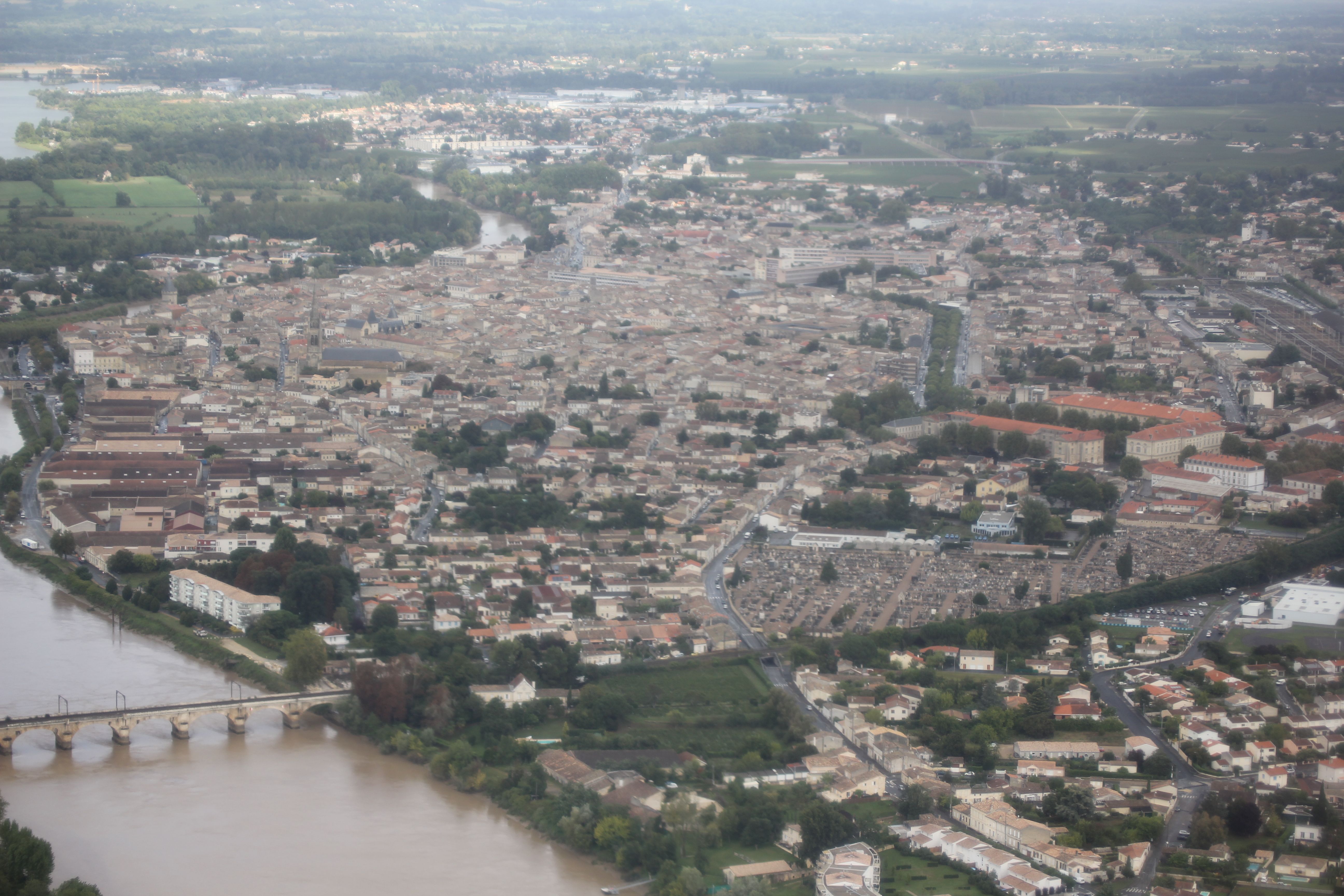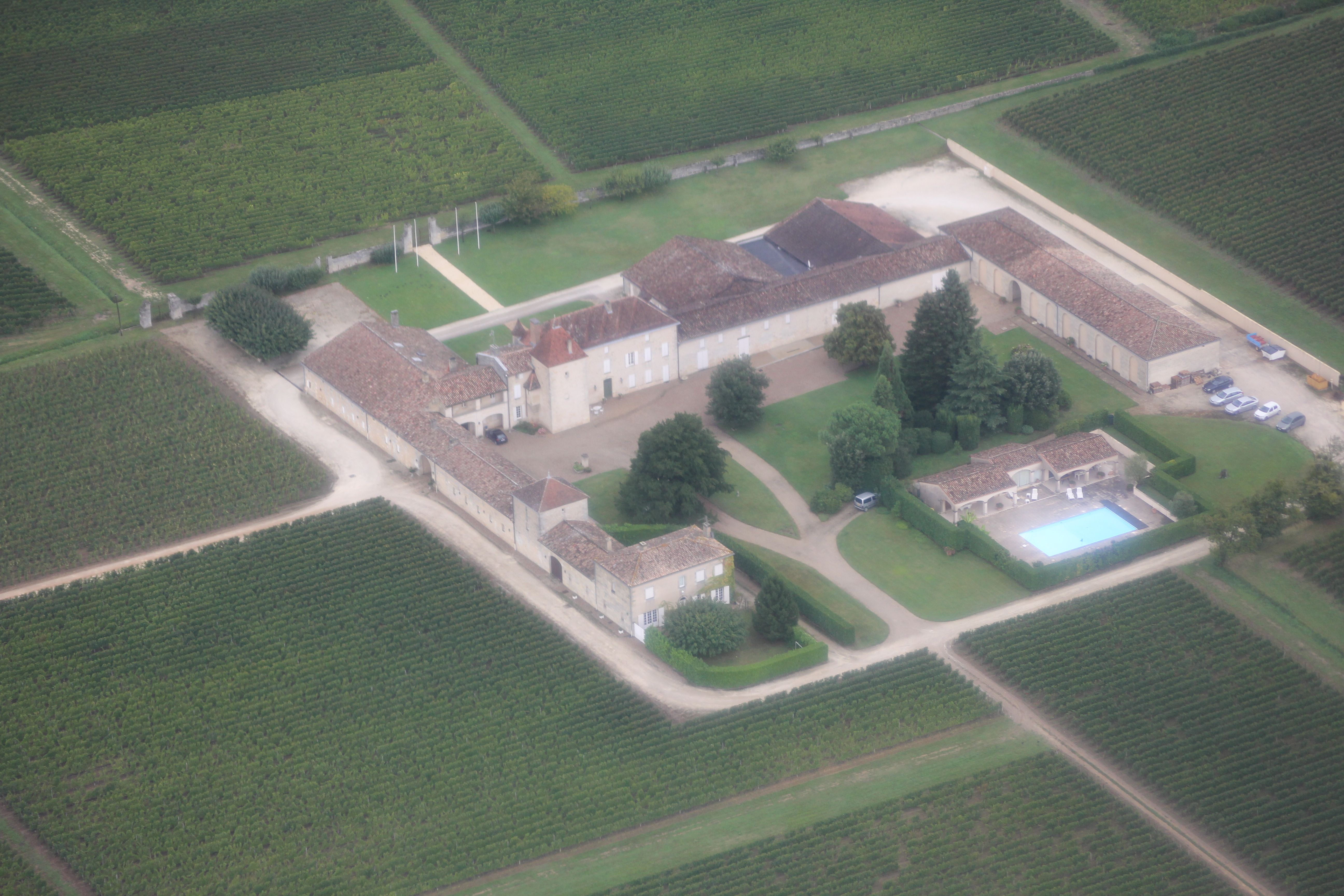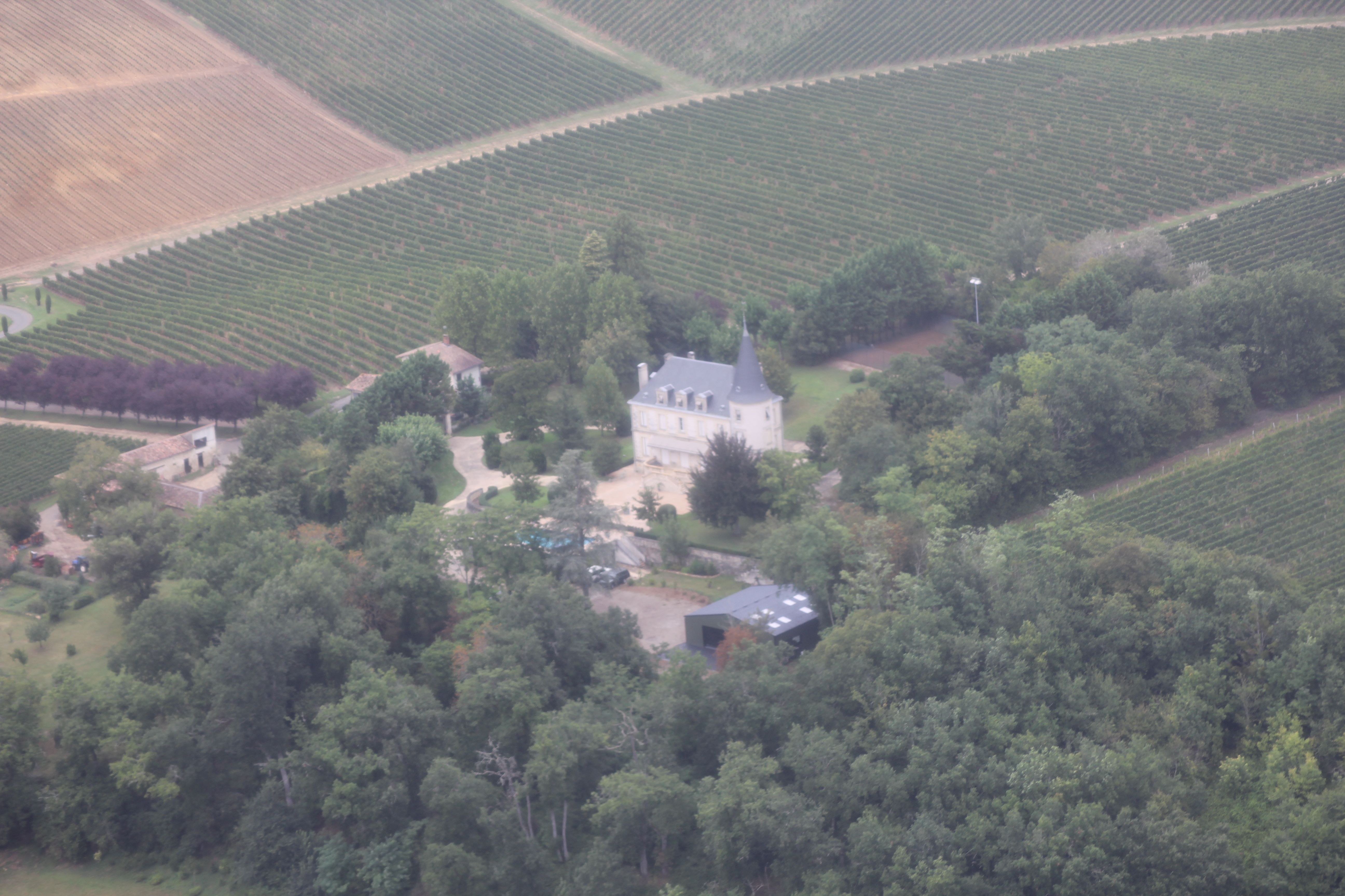 Après quelques minutes de vol nous arrivons à Château Fombrauge.