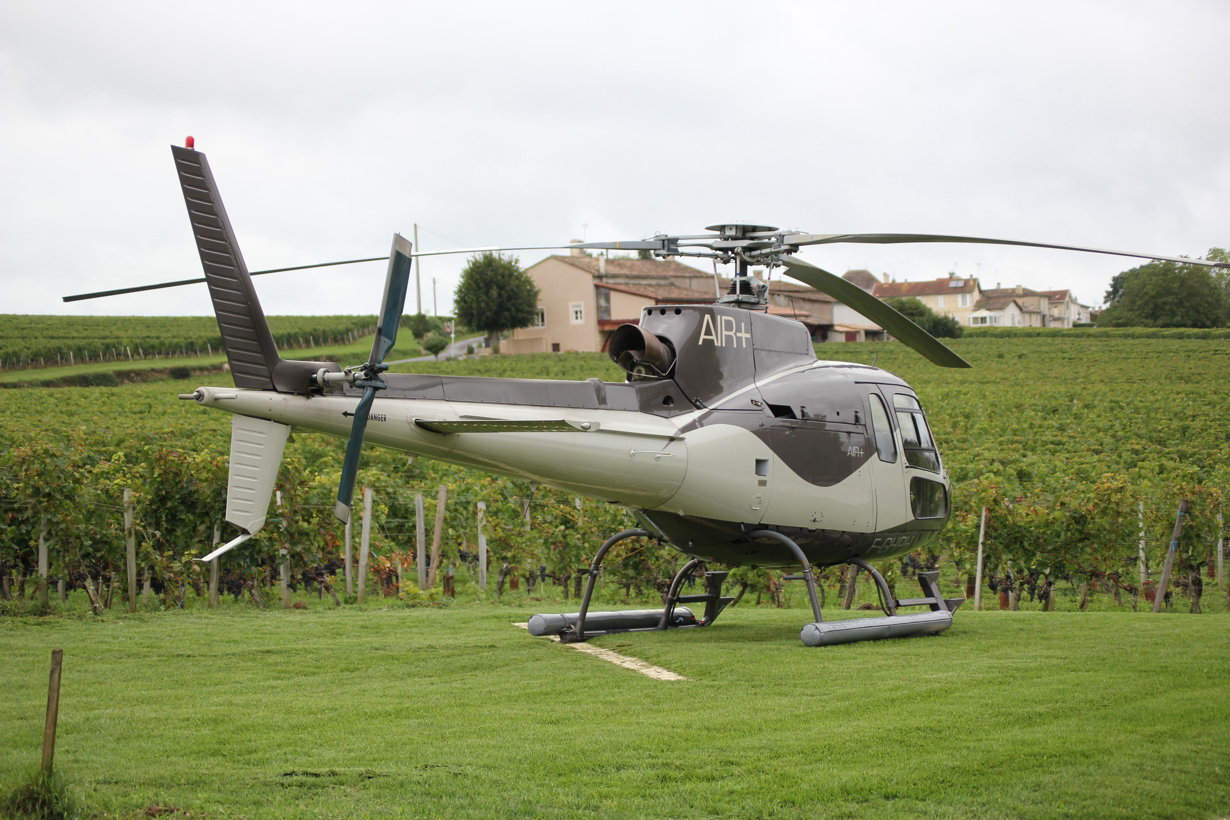 Rendez vous est donc pris à Bordeaux où nous arrivons en train, à la gare, une Rolls Royce Phantom du plus bel effet nous attends pour nous emmener à l’héliport. Il n’est en effet pas de meilleur moyen pour visiter le bordelais que l’hélicoptère, celui ci permettant un survol des propriétés absolument spectaculaire tout en permettant un gain de temps des plus intéressant. Nous nous envolons vers Château Fombrauge.