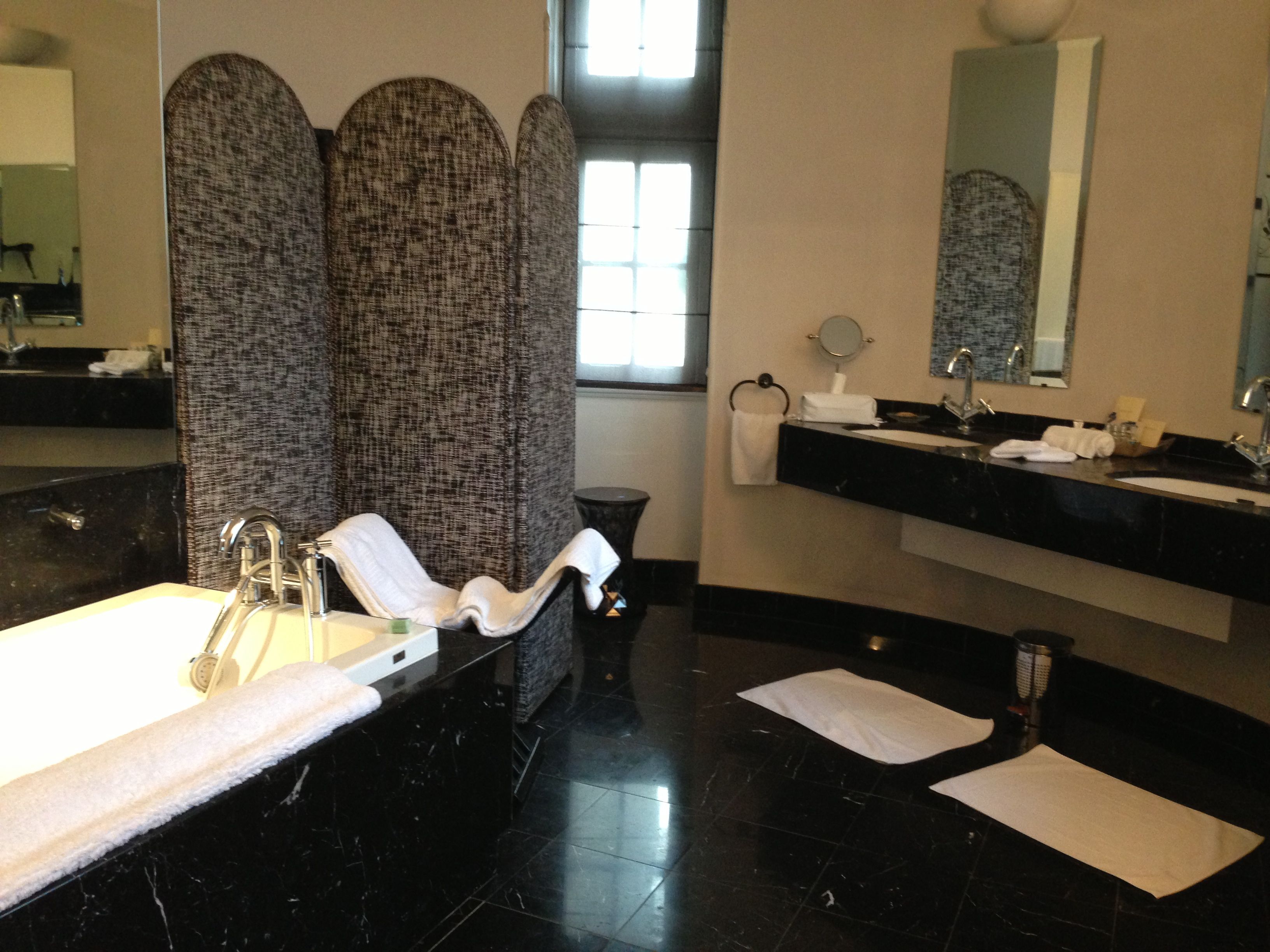 A l’heure du bain la voute en anse, le sol carrelé antique, et le marbre Marquina noir confèrent à votre salle de bain des allures de thermes romains.