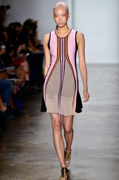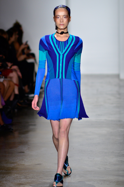 Ohne Titel nous propose pour le printemps été 2014 une collection graphique, architecturale, jouant sur l’extra fin et les matières plus techniques. Les couleurs sont apportés comme des coups de pinceaux sur de la maille parfaitement assumée et maîtrisée.
