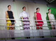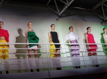 Amaya Arzuaga a présenté sa collection sous forme d’une performance artistique mêlant installation audiovisuelle et défilés. Pour ce qui est des vêtements, la collection définitivement moderne et futuriste mélange effet kaléidoscopiques et origamis. Les couleurs sont flashy et s’opposent les unes aux autres, côté matières : gazar, soie sauvage, néoprène, tri acetate mettent en relief des pièces réversibles et des coupes asymétriques. Une collection moderne, futuriste et sexy.
