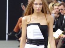 Maxime Simoens présentait dans l’enceinte de l’Orangerie du Parc André Citroën sa collection Printemps Été 2014, une collection moderne, étincelante, éléctro et métallique.