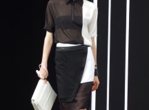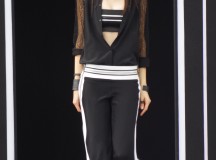 La femme Simoens est zippée, moulée, les tenues sont courtes millimétrées. On remarque l’absence de couleurs puisque les noirs et les blancs sont omniprésents, laissant parfois apparaître un gris ou turquoise magnifique.