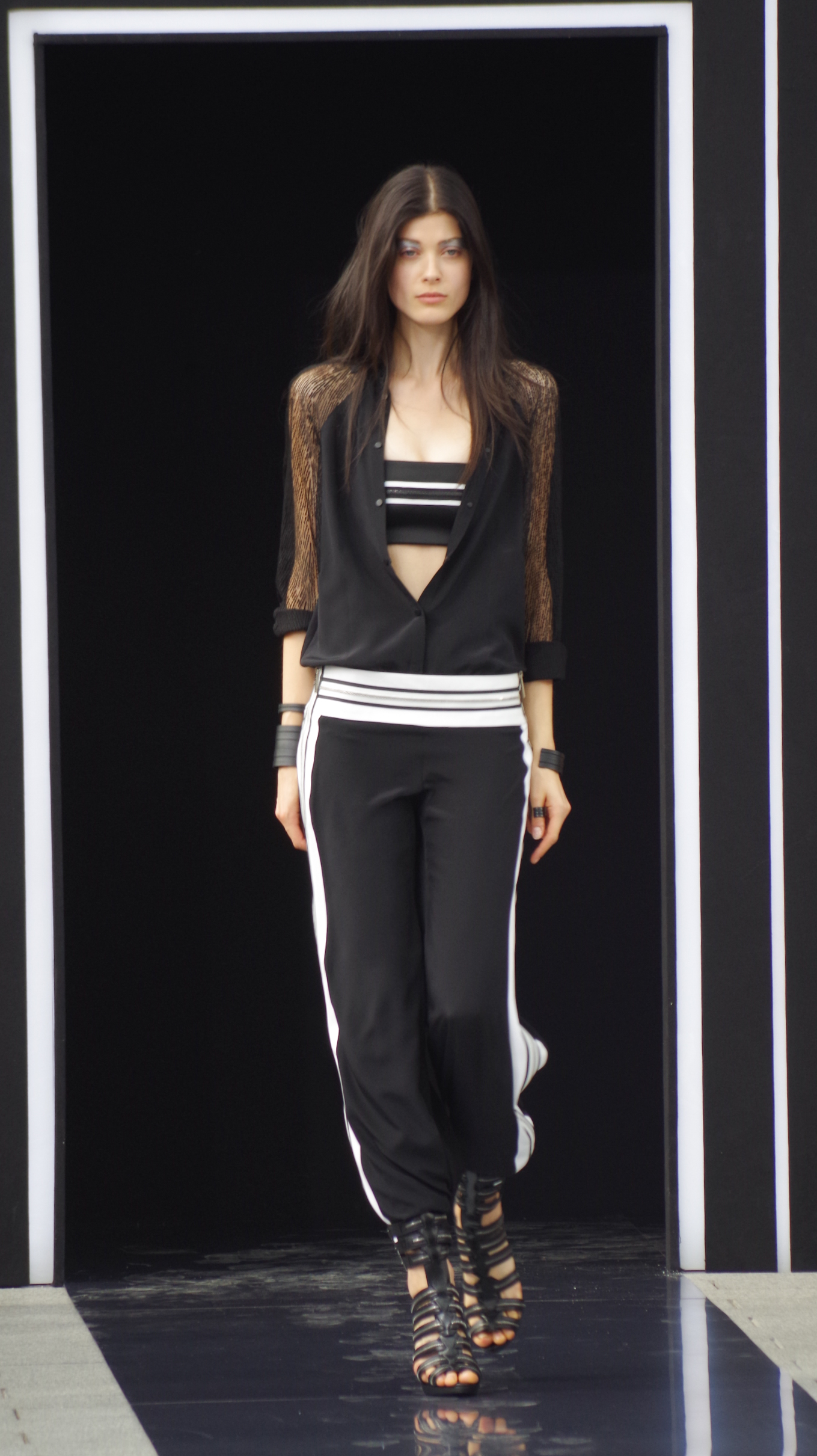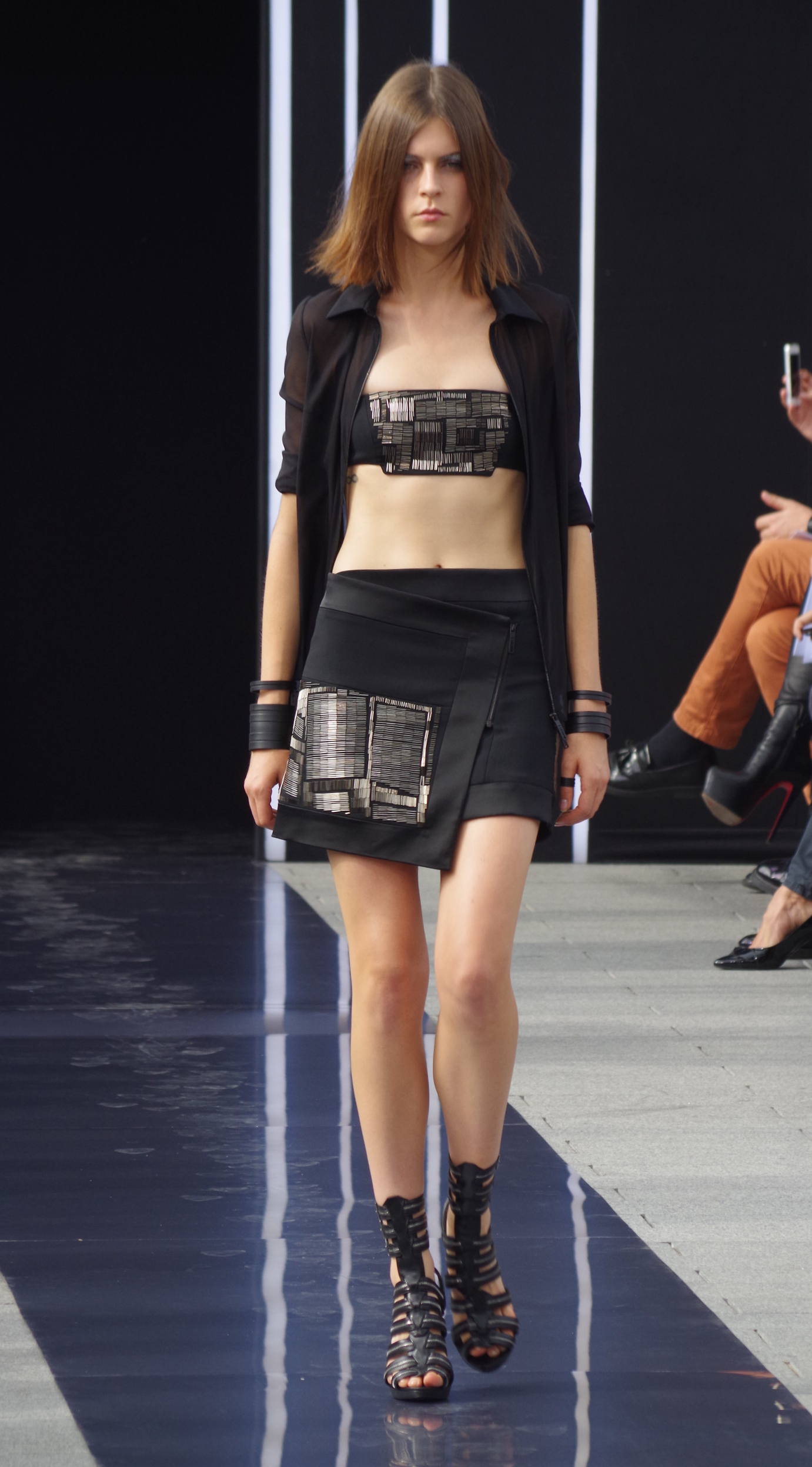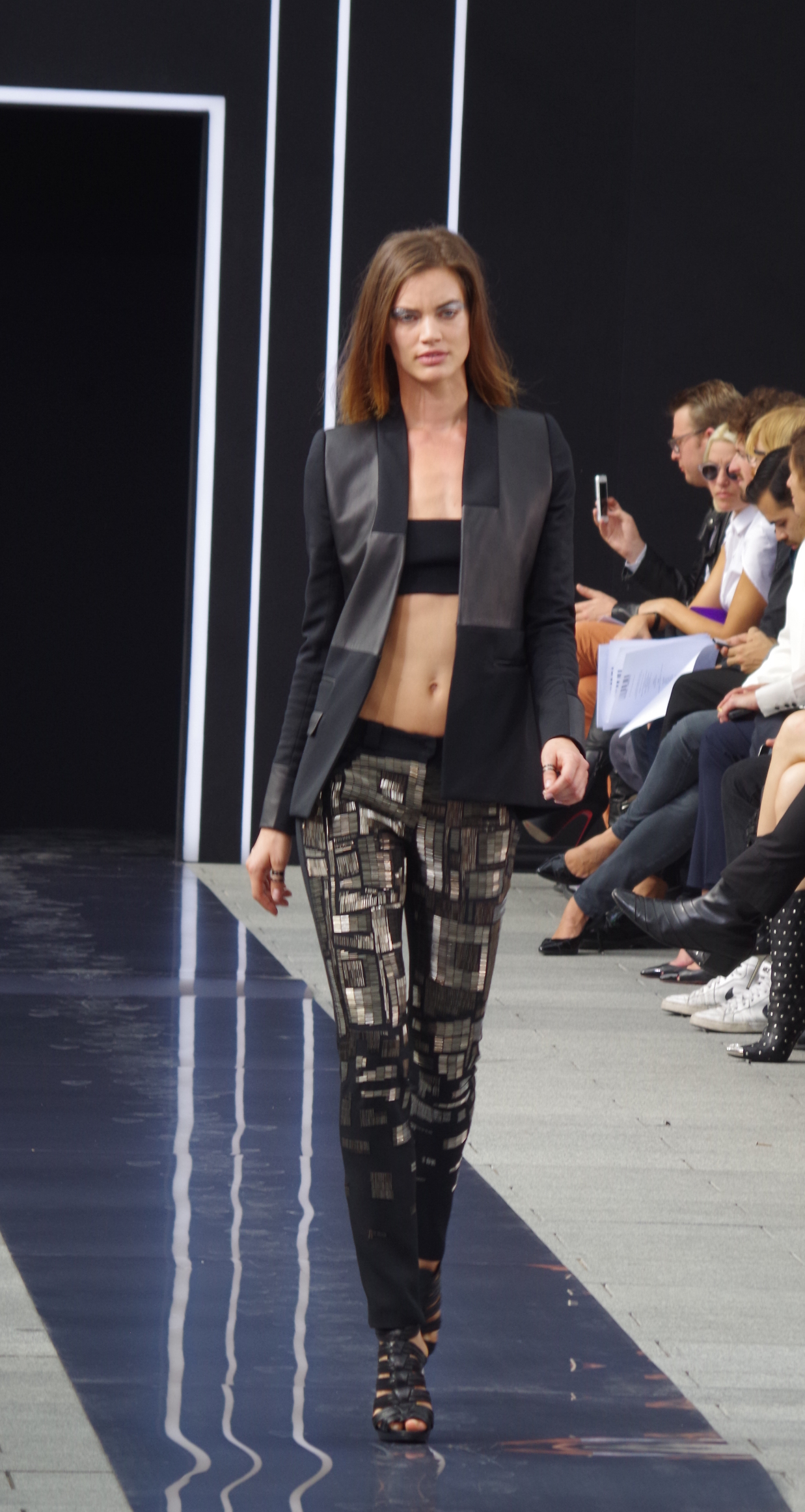 Maxime Simoens présentait dans l’enceinte de l’Orangerie du Parc André Citroën sa collection Printemps Été 2014, une collection moderne, étincelante, éléctro et métallique.