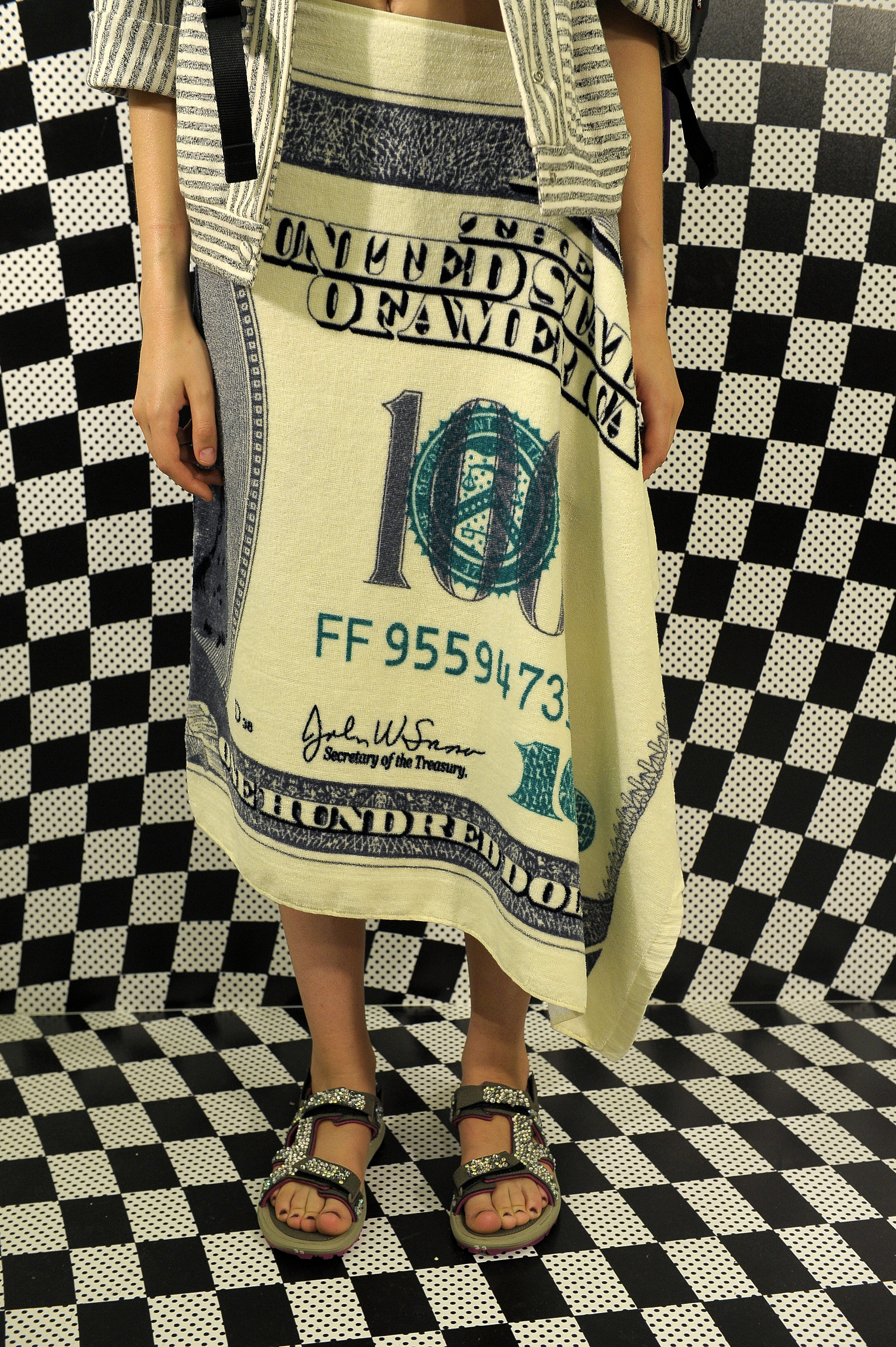 Les imprimés sont over, comme le billet de dollar revisité, ou encore un damier coloré.