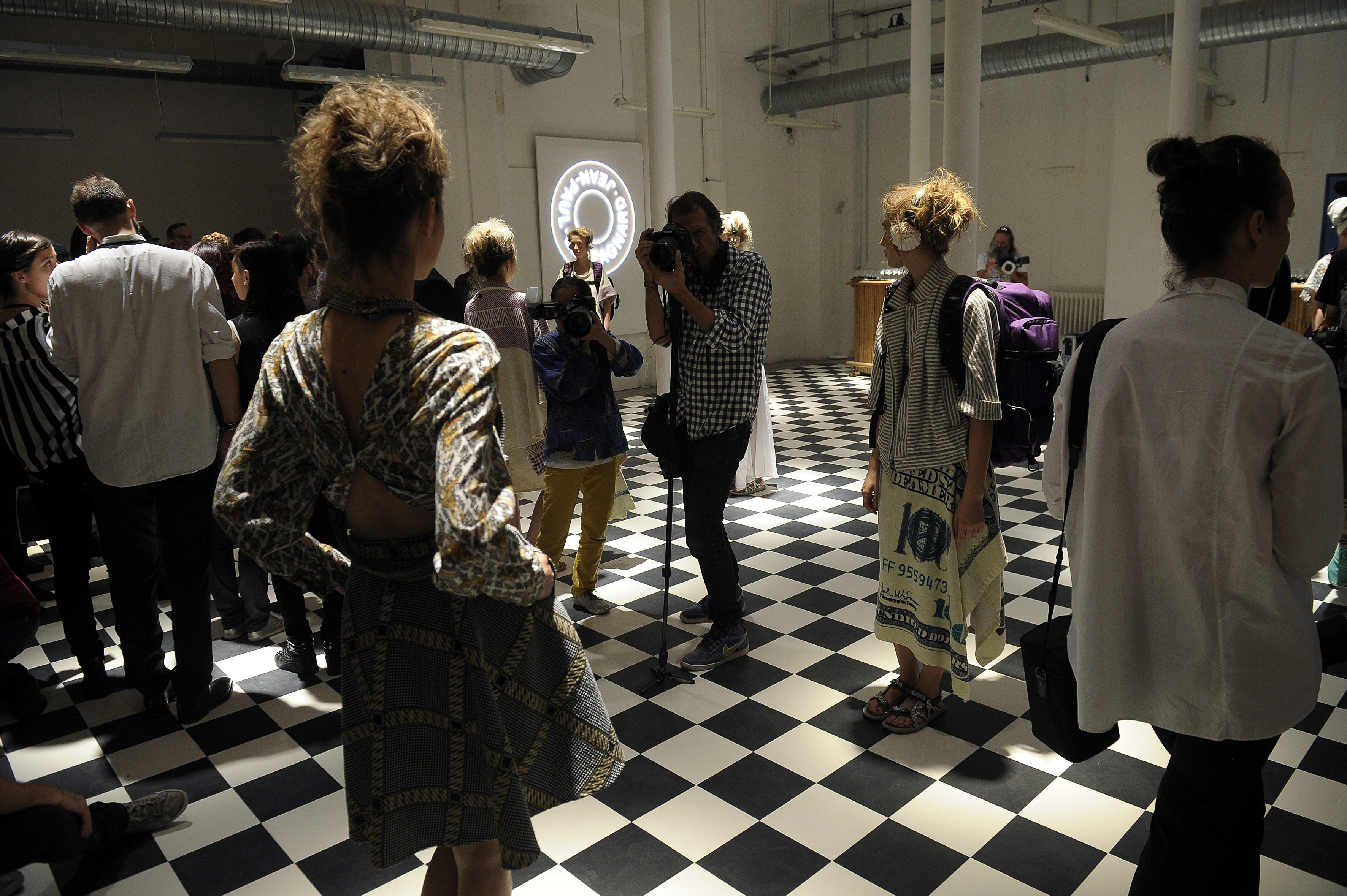 Pour sa collection Prêt-à-porter Femme Printemps/Eté 2014, le créateur belge Jean Paul Lespagnard nous proposait de devenir acteurs de sa présentation. Concept apprécié de tous, le contact avec les modèles défilant autour de nous était un moment privilégié tant pour partager que pour voir au plus près les pièces présentées. Un moment convivial, sur fond de musique rythmée.