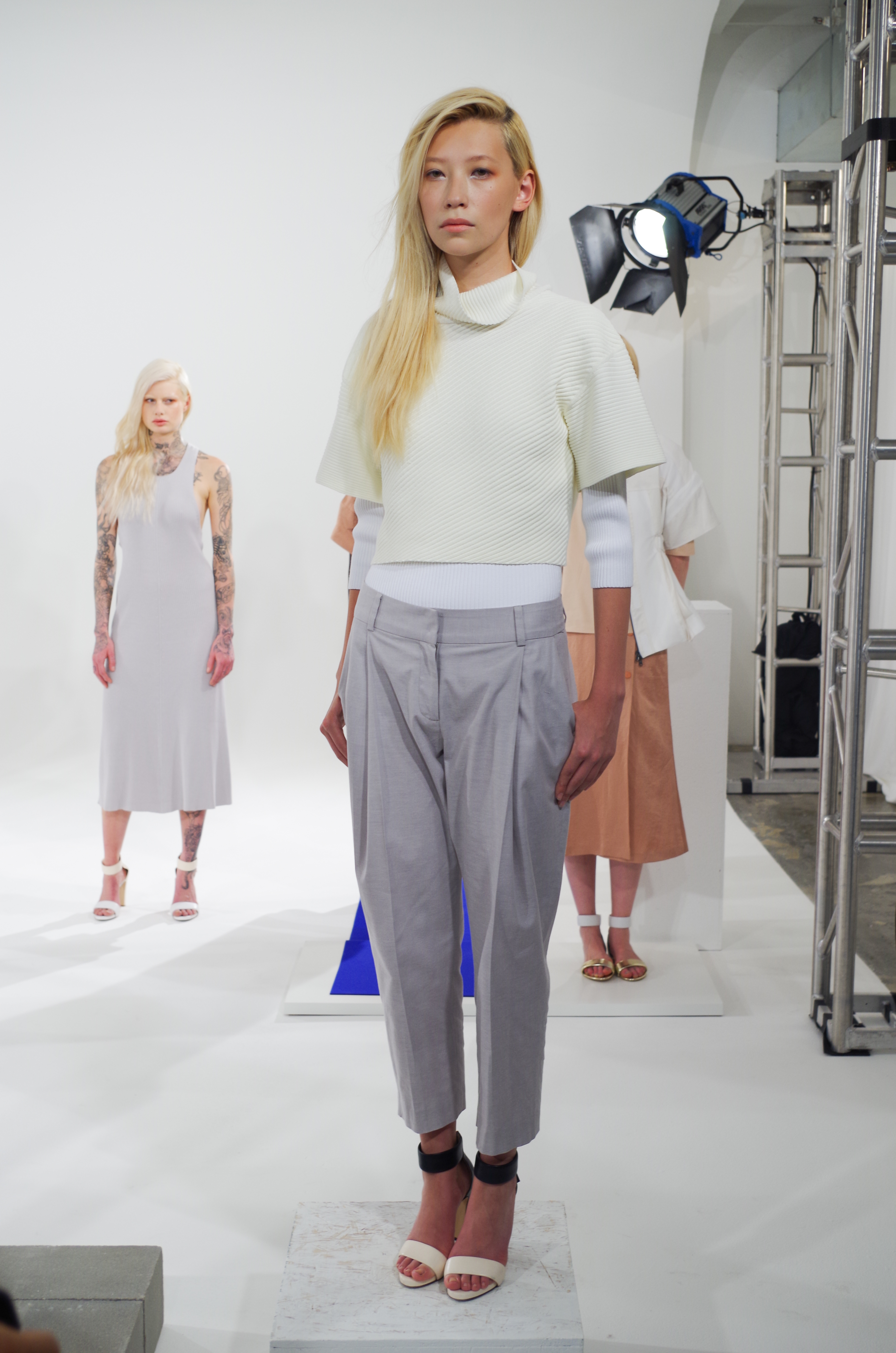 Bellavance puise son inspiration sur les trios et plus particulièrement les relations entre trois soeurs. Une collection qui se veut fraîche, fluide, lumineuse qui reste néanmoins inspirée par la structure et l’architecture.