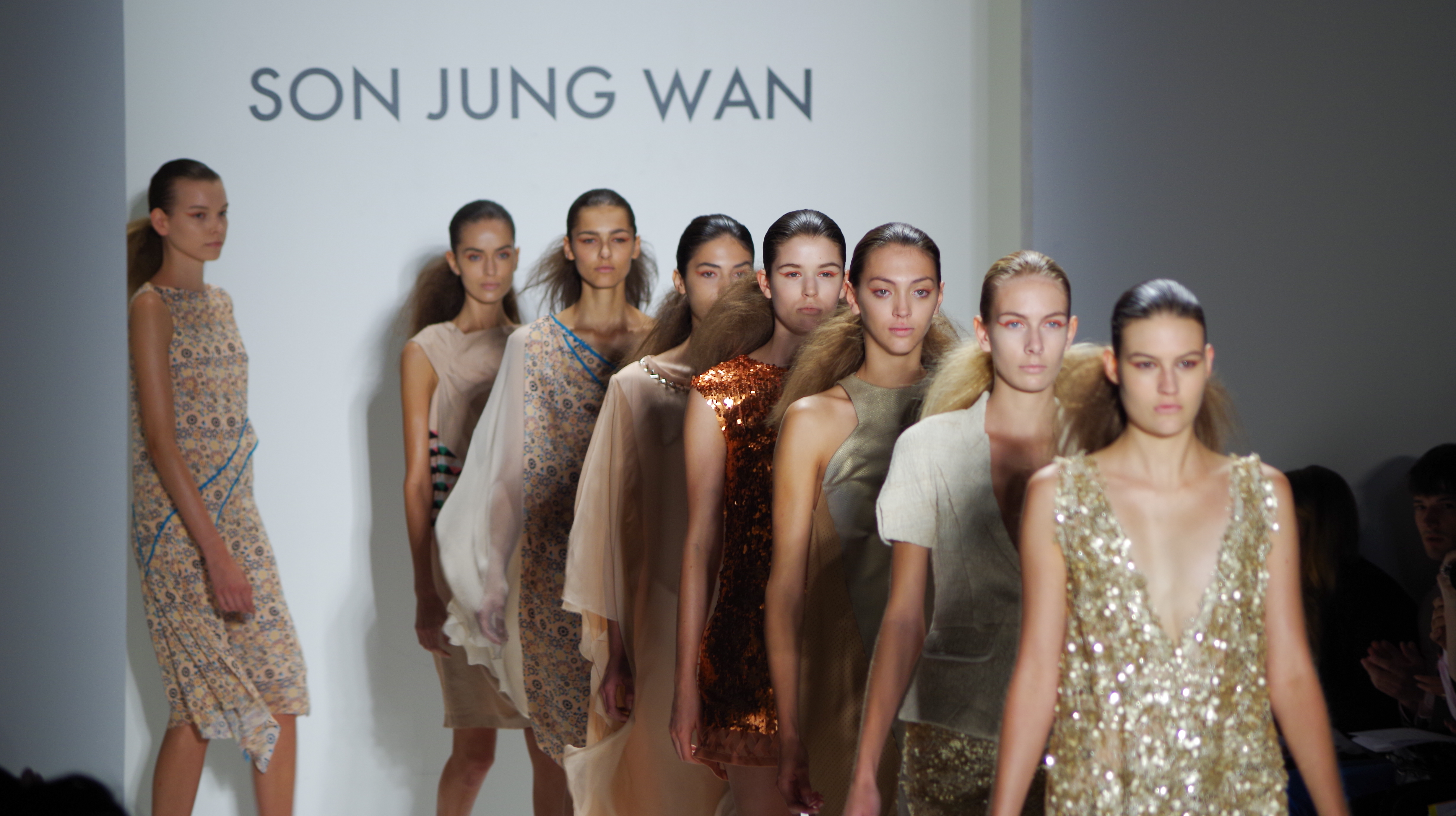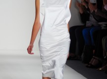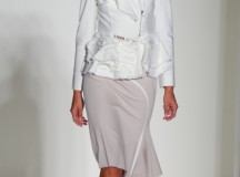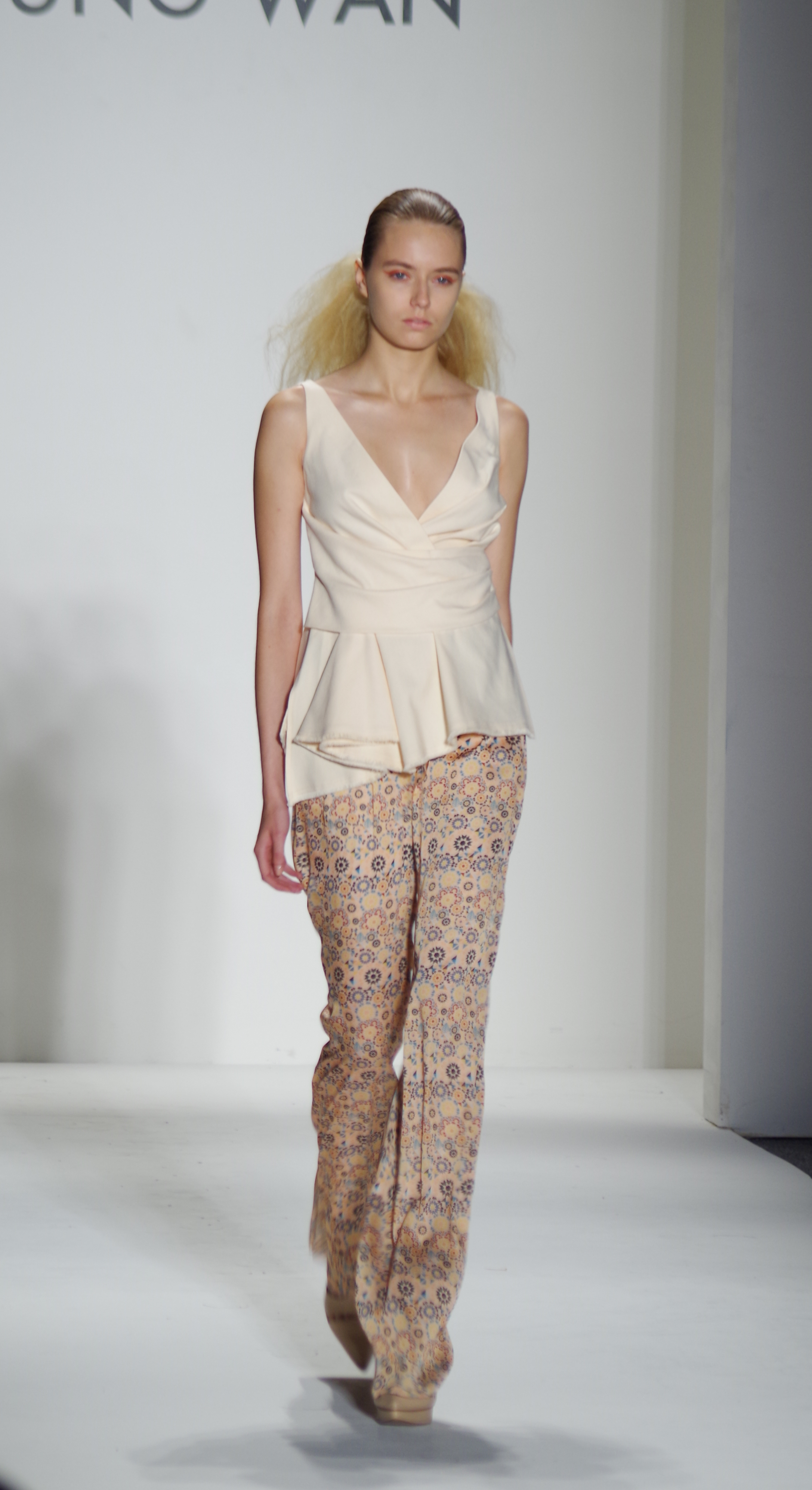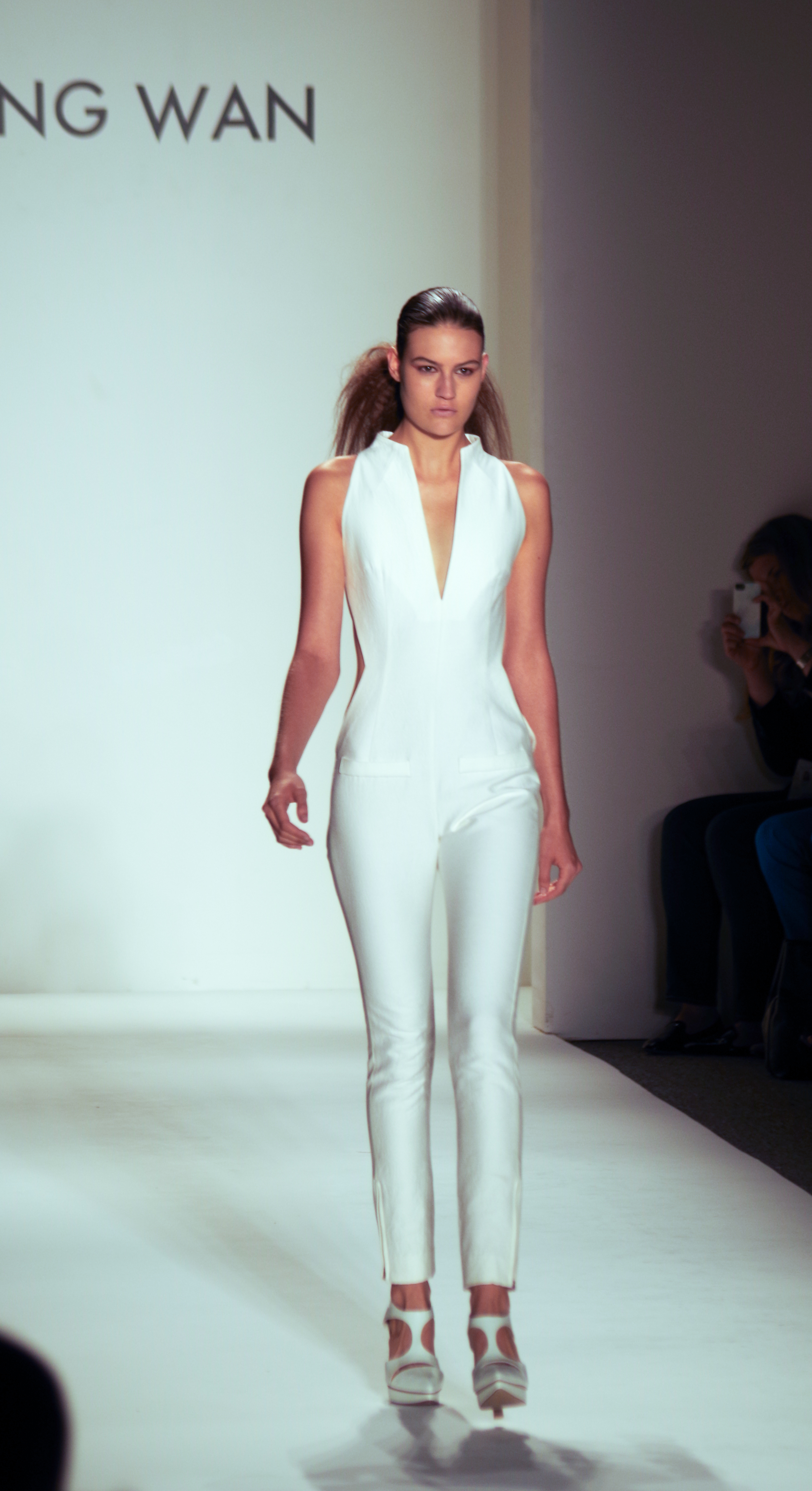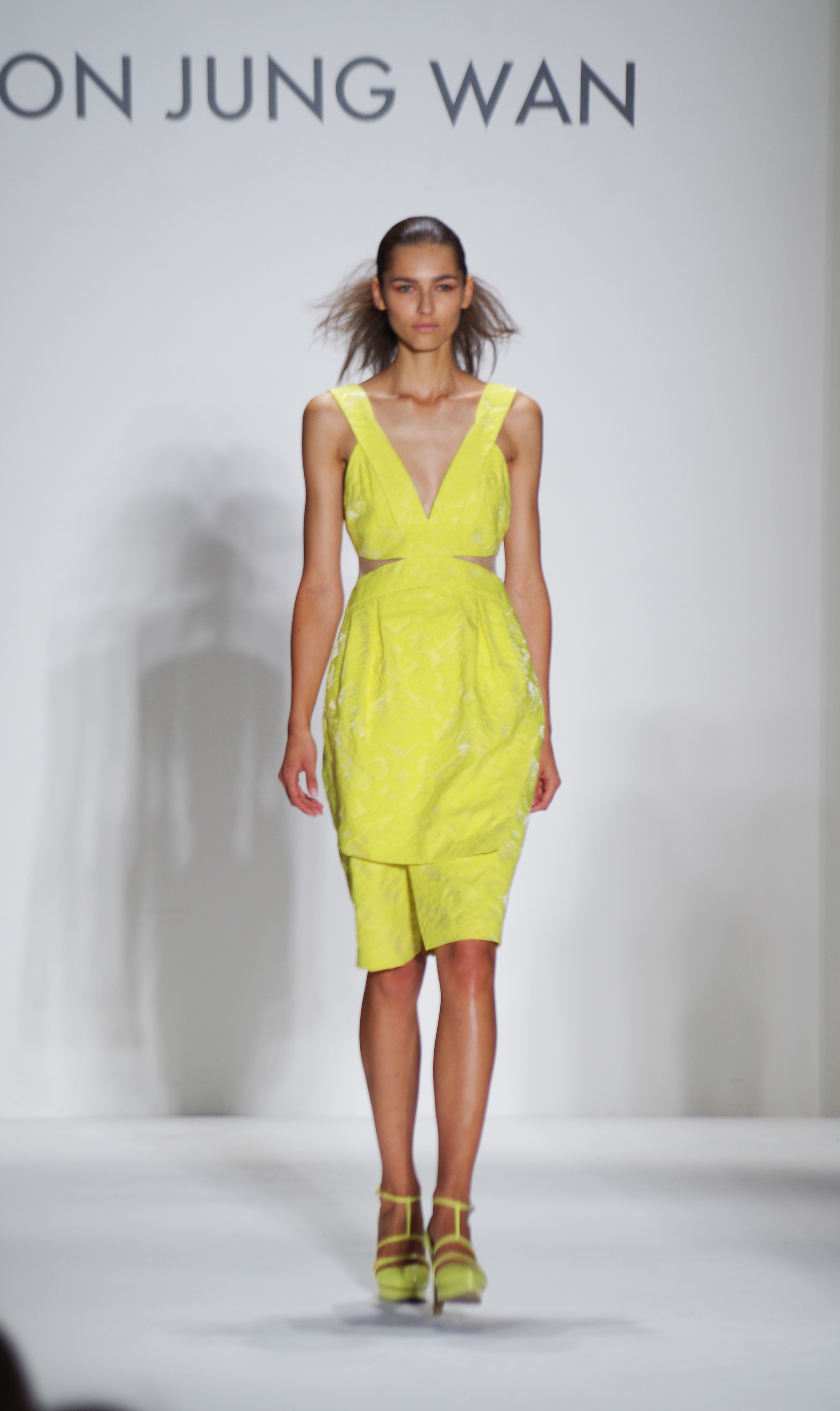 Son Jung Wan nous invite au voyage avec sa collection appelée Away hommage au Maroc. Il présente une collection où minimalisme et asymétrie sont les maîtres mots. Une collection pure tel le blanc omniprésent et les quelques teintes pastels viennent égailler, une pureté qui ne fait pas oublier la féminité et la sensualité.