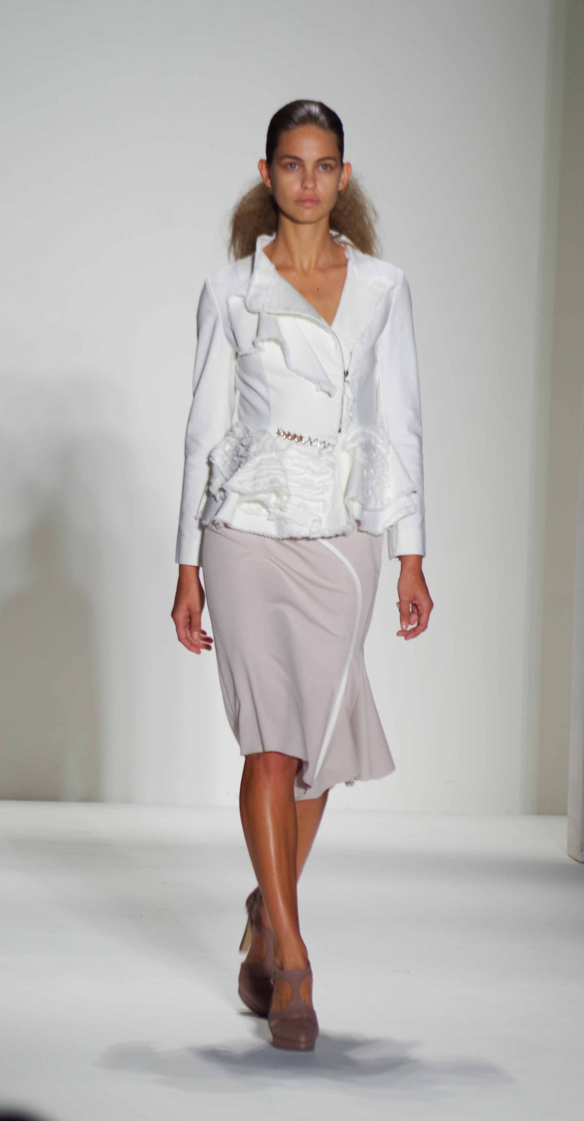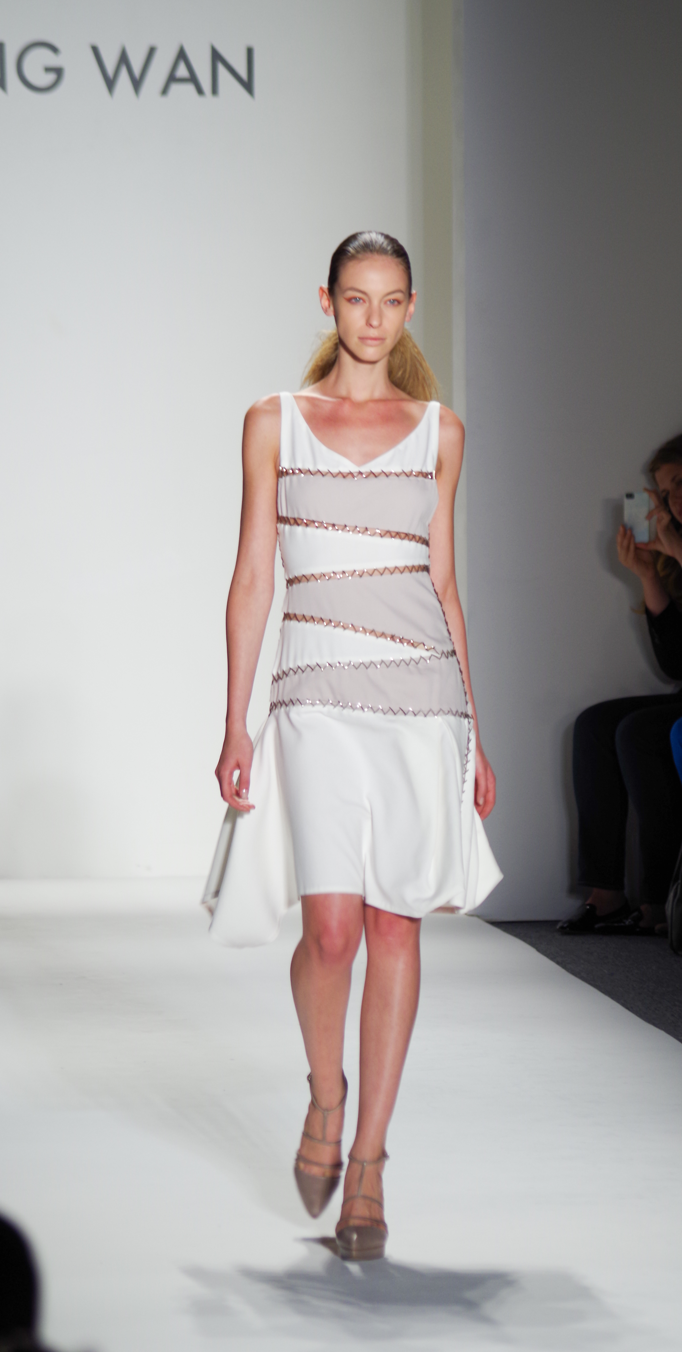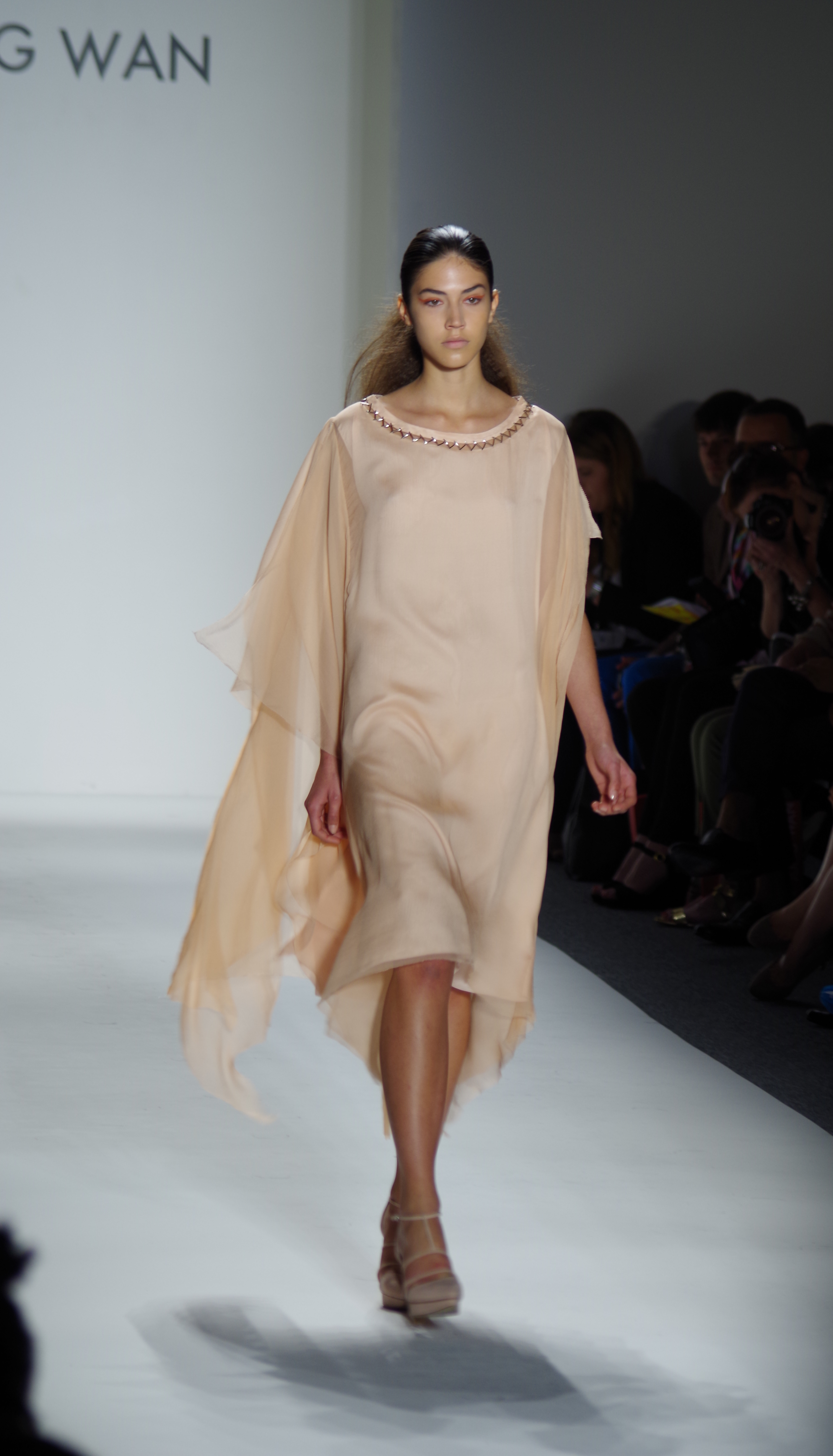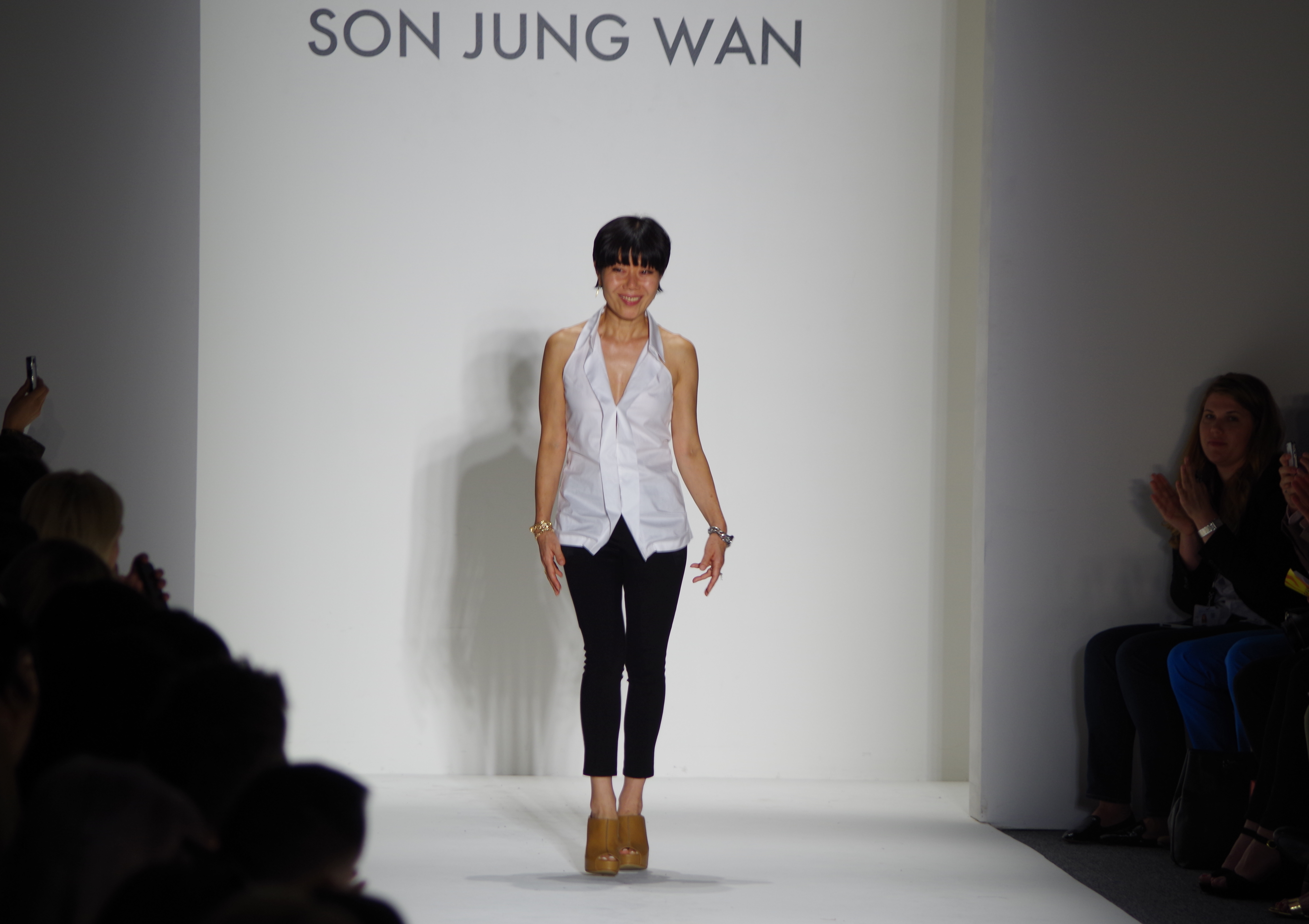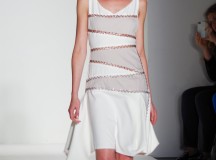Son Jung Wan nous invite au voyage avec sa collection appelée Away hommage au Maroc. Il présente une collection où minimalisme et asymétrie sont les maîtres mots. Une collection pure tel le blanc omniprésent et les quelques teintes pastels viennent égailler, une pureté qui ne fait pas oublier la féminité et la sensualité.