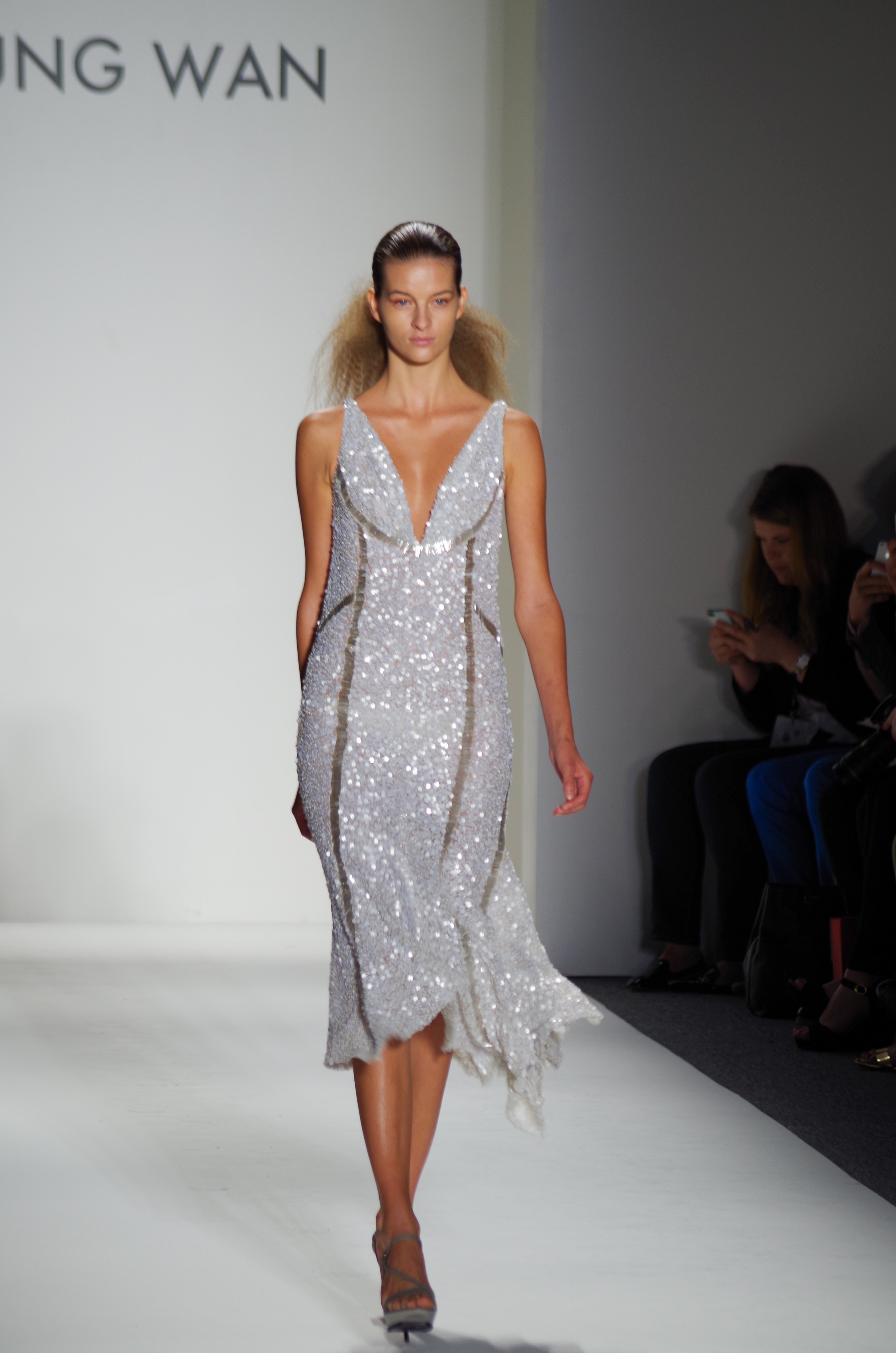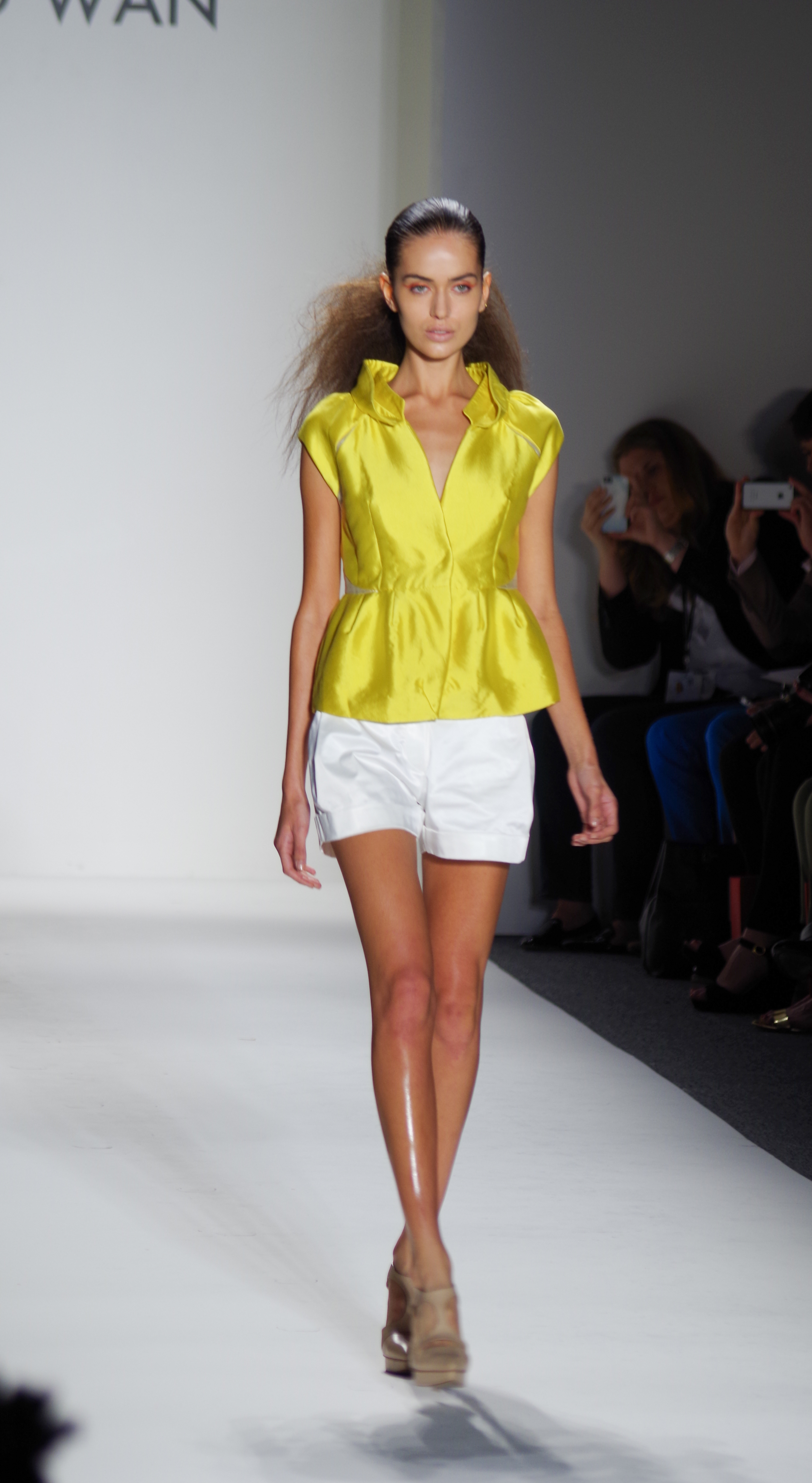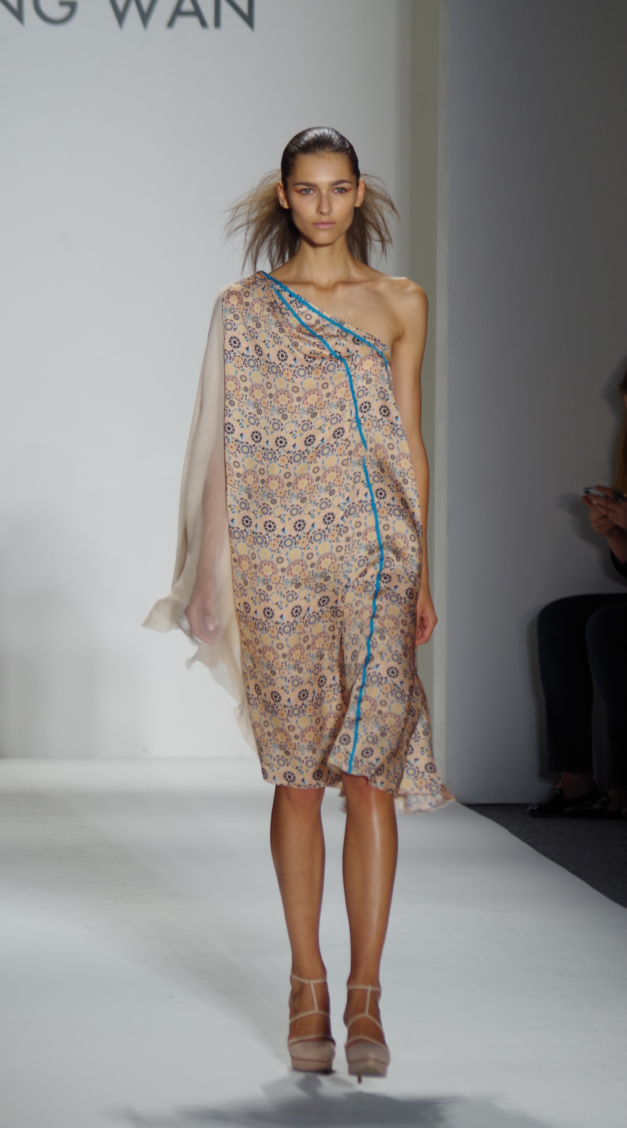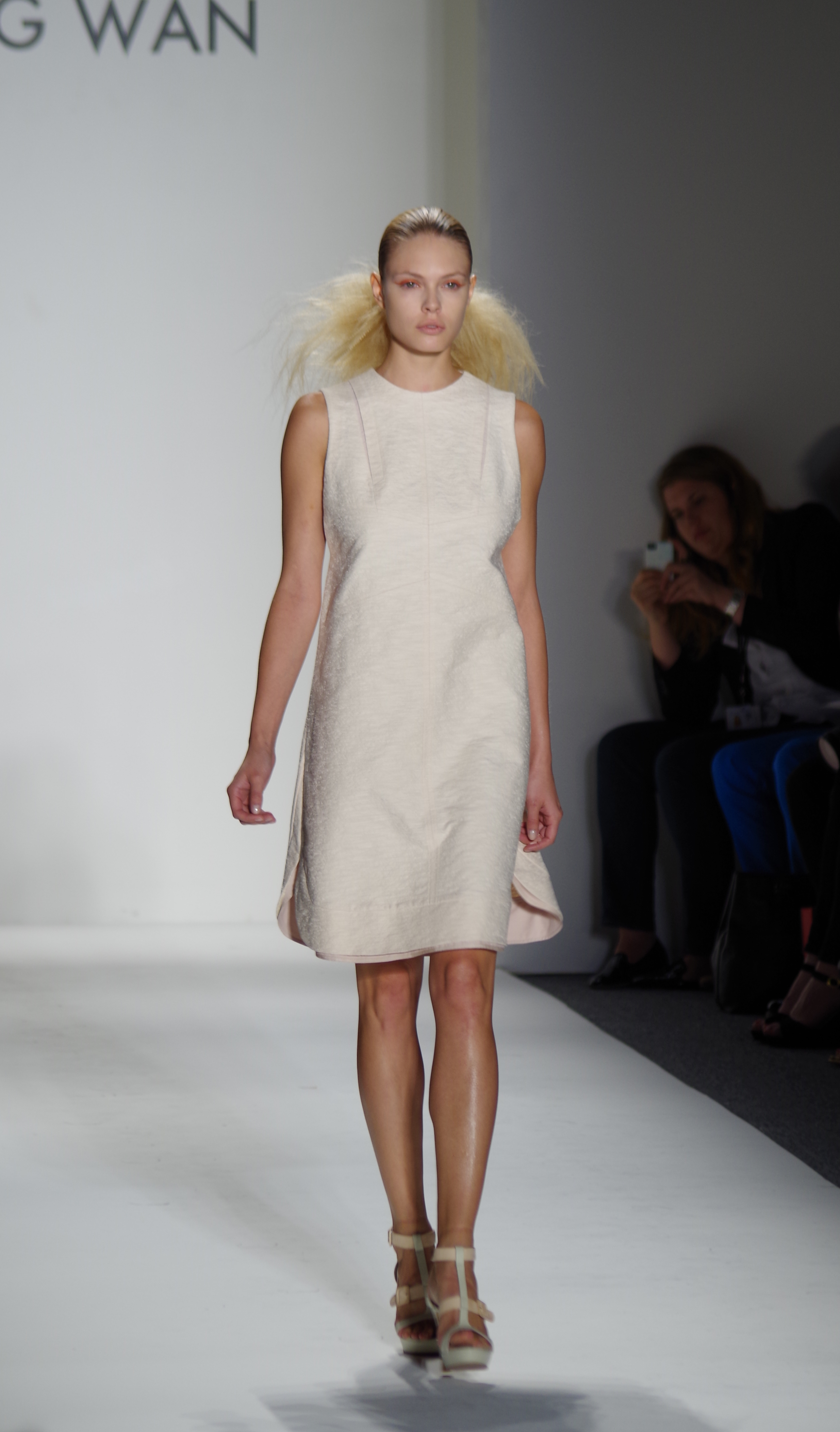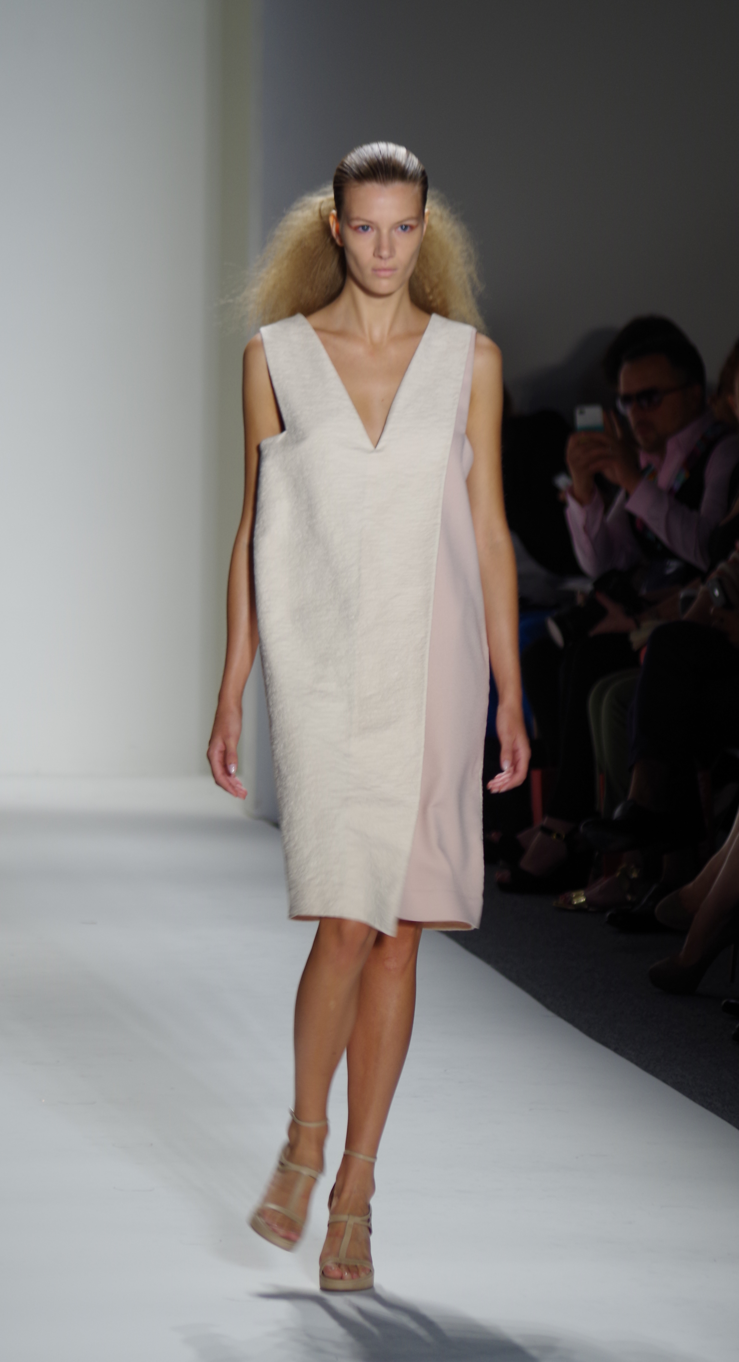 Son Jung Wan nous invite au voyage avec sa collection appelée Away hommage au Maroc. Il présente une collection où minimalisme et asymétrie sont les maîtres mots. Une collection pure tel le blanc omniprésent et les quelques teintes pastels viennent égailler, une pureté qui ne fait pas oublier la féminité et la sensualité.