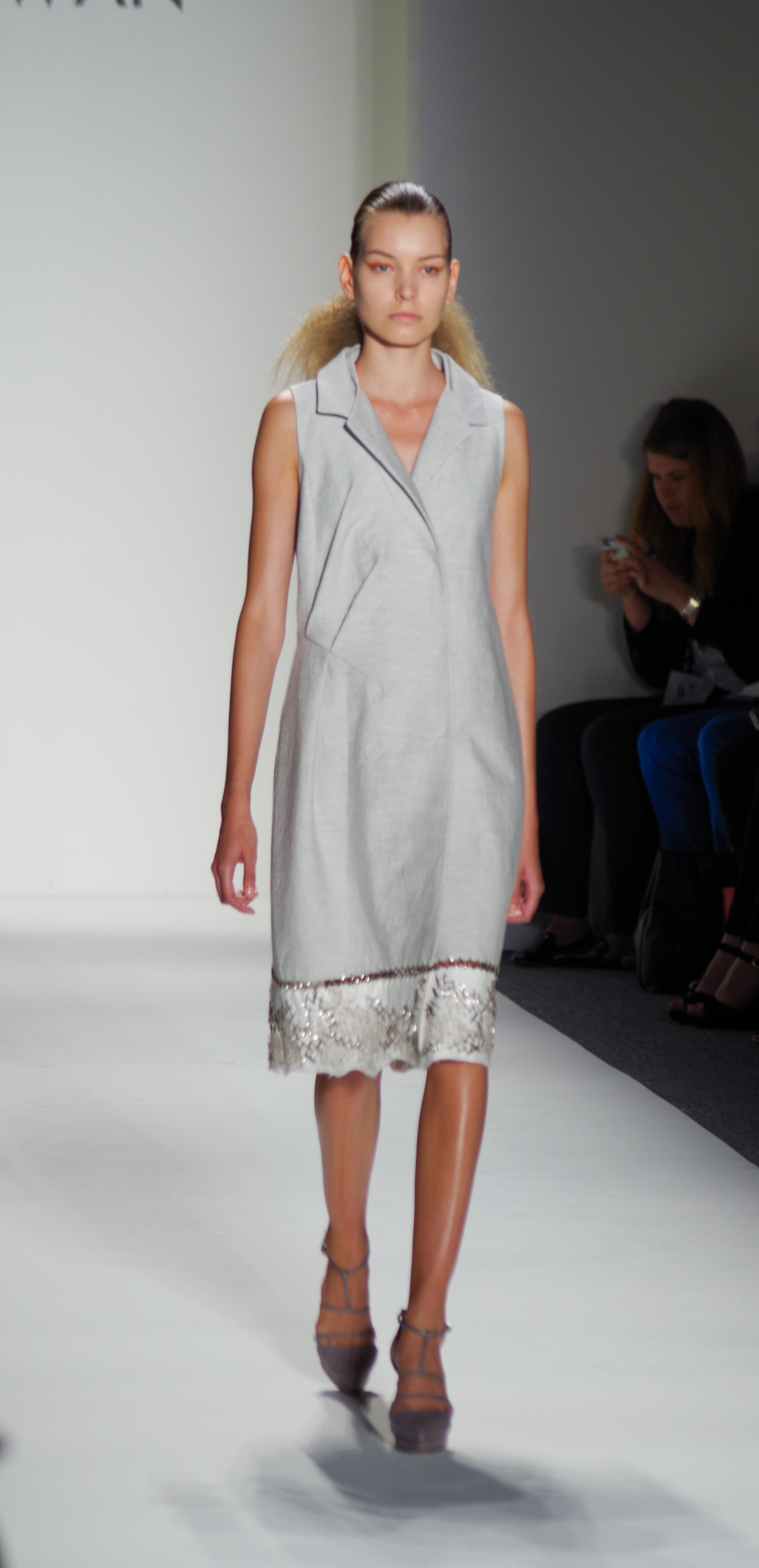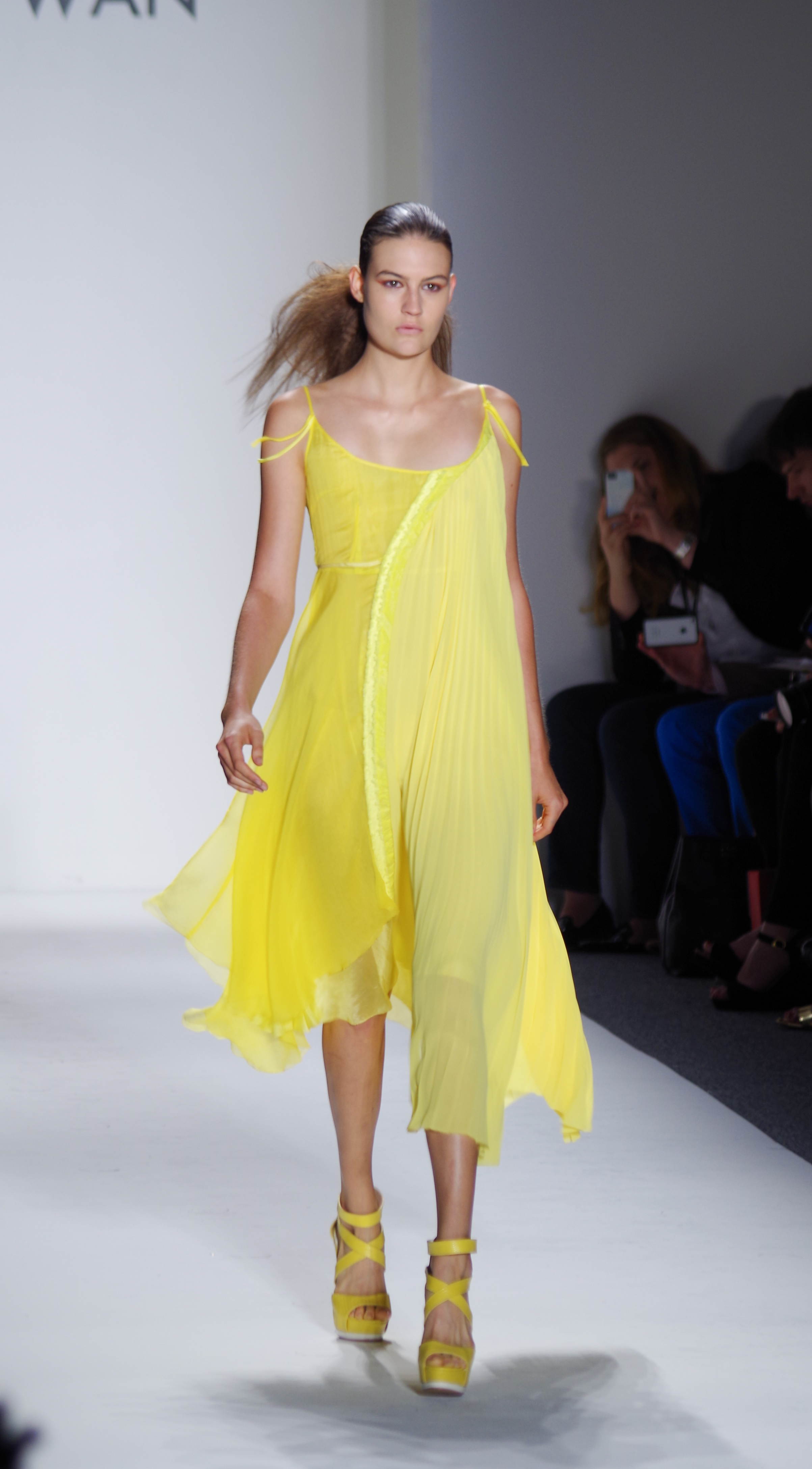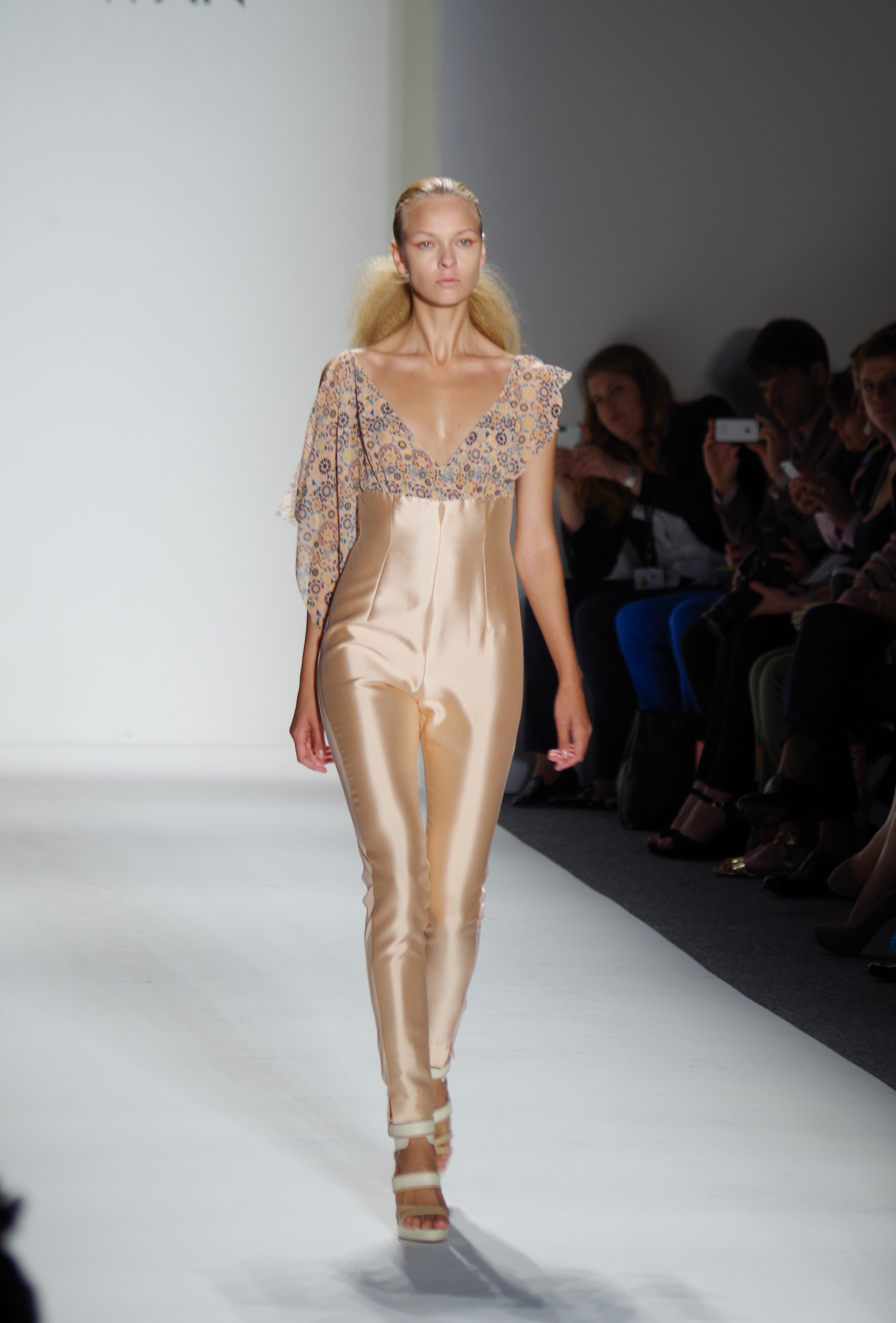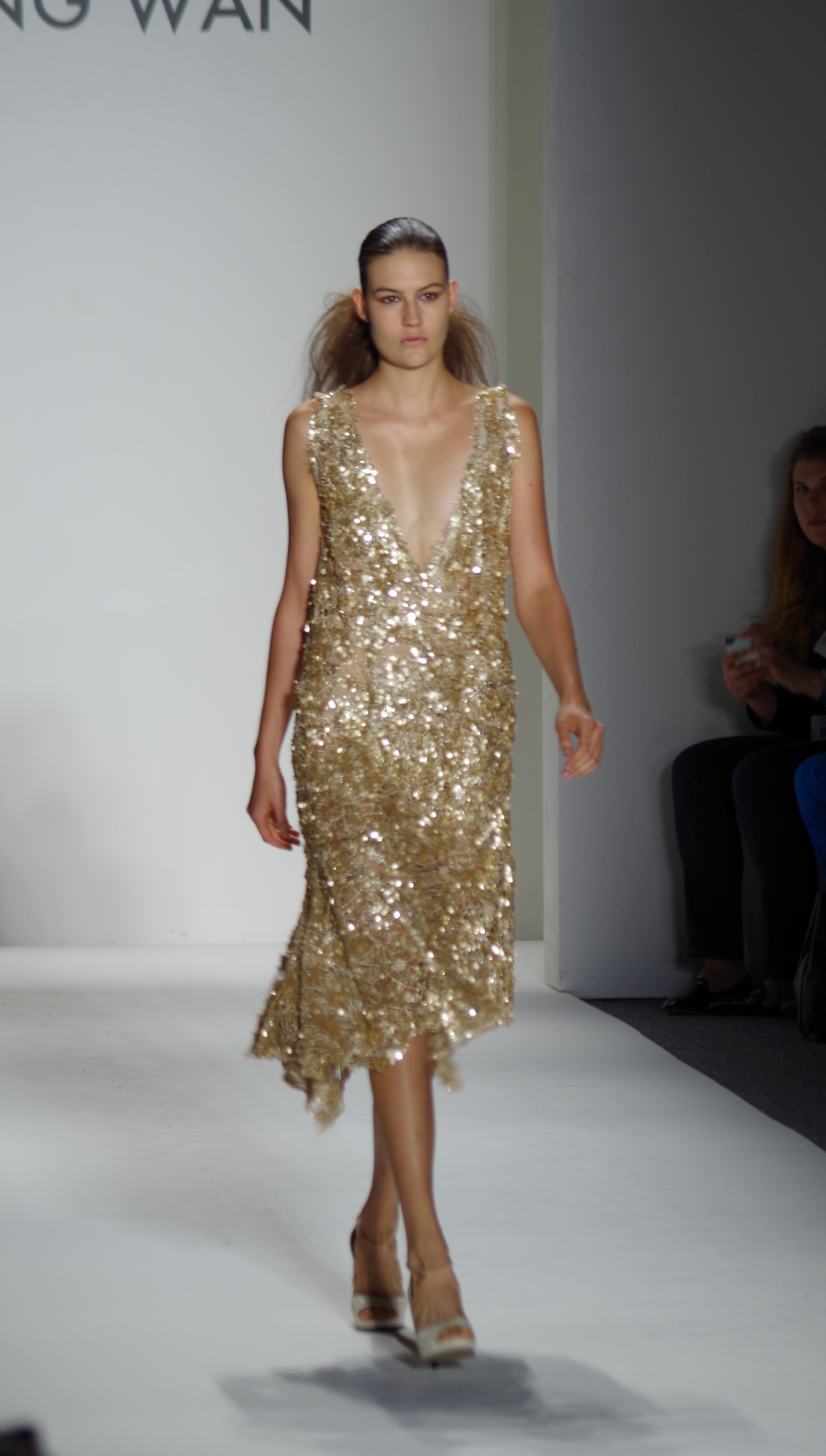 Son Jung Wan nous invite au voyage avec sa collection appelée Away hommage au Maroc. Il présente une collection où minimalisme et asymétrie sont les maîtres mots. Une collection pure tel le blanc omniprésent et les quelques teintes pastels viennent égailler, une pureté qui ne fait pas oublier la féminité et la sensualité.