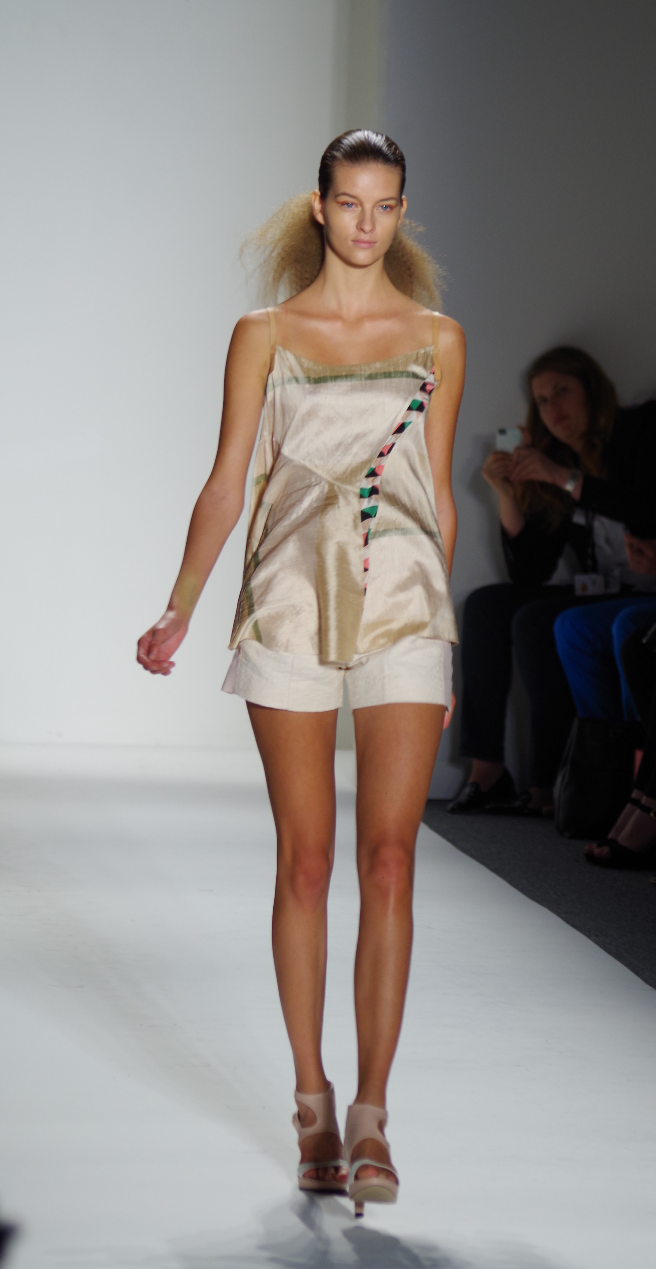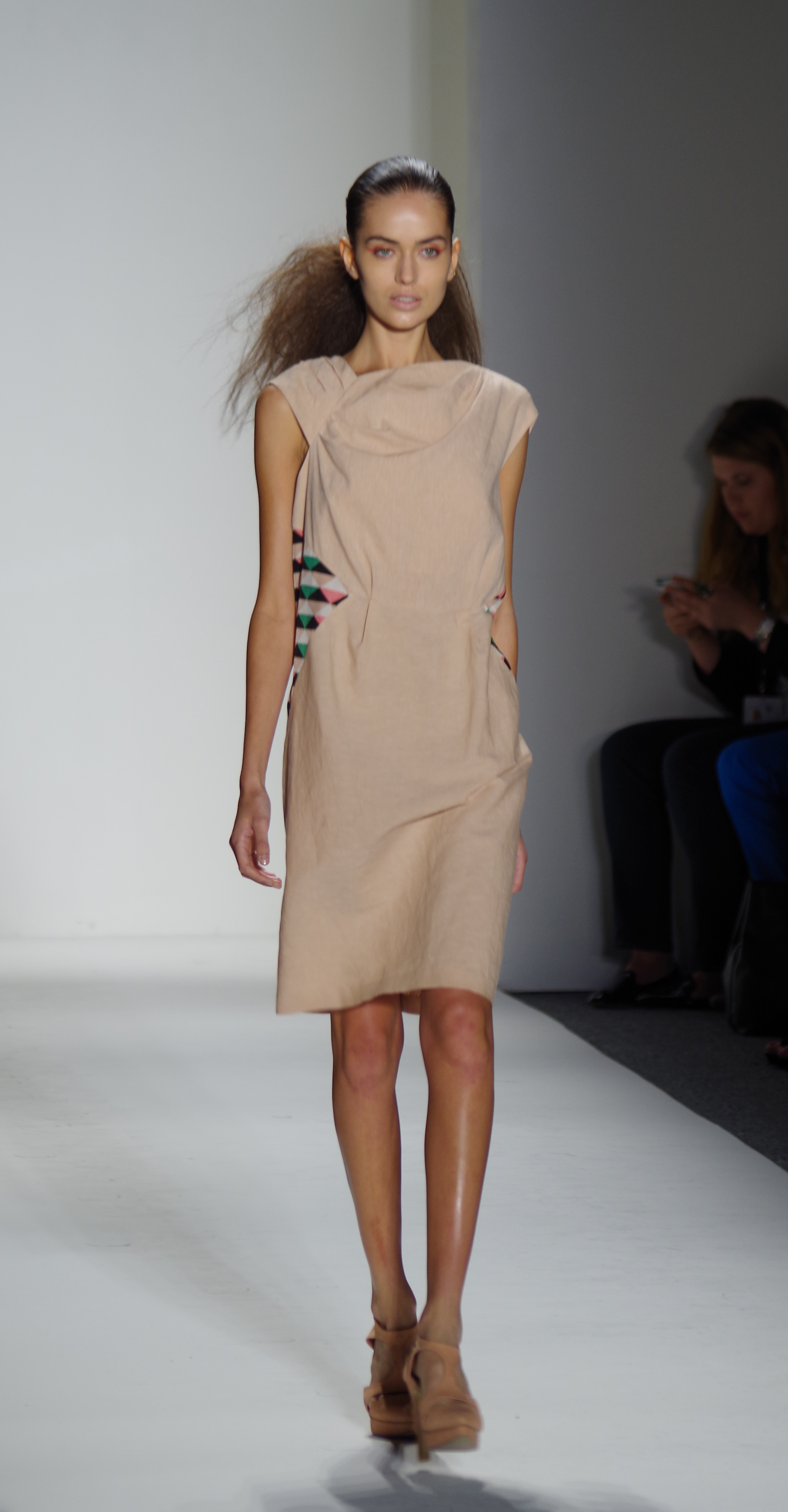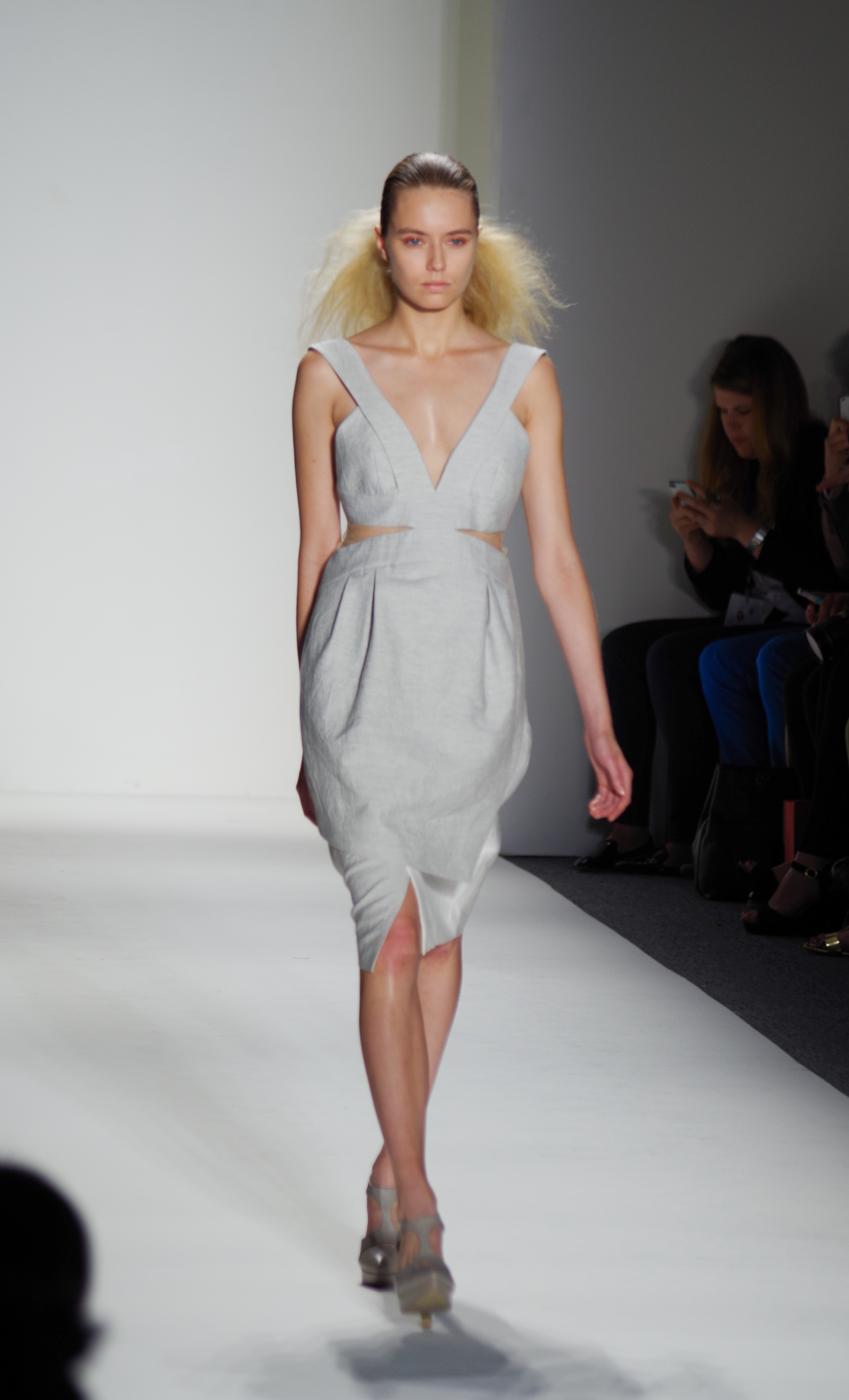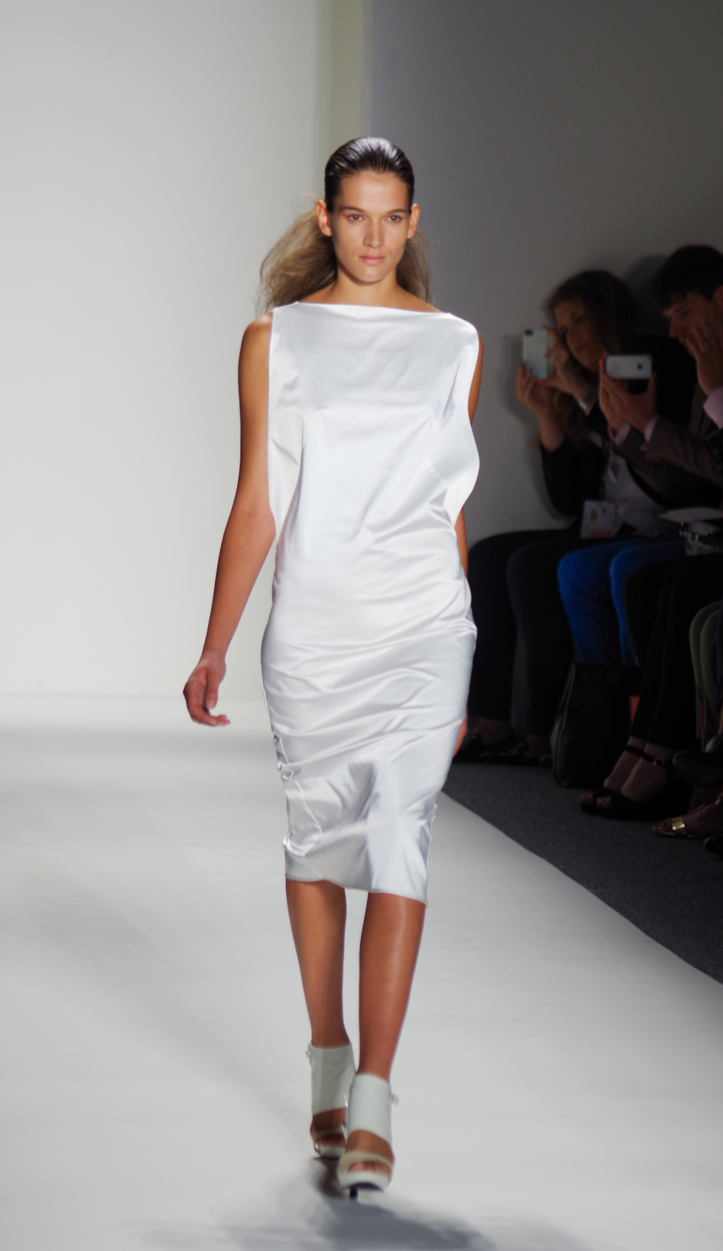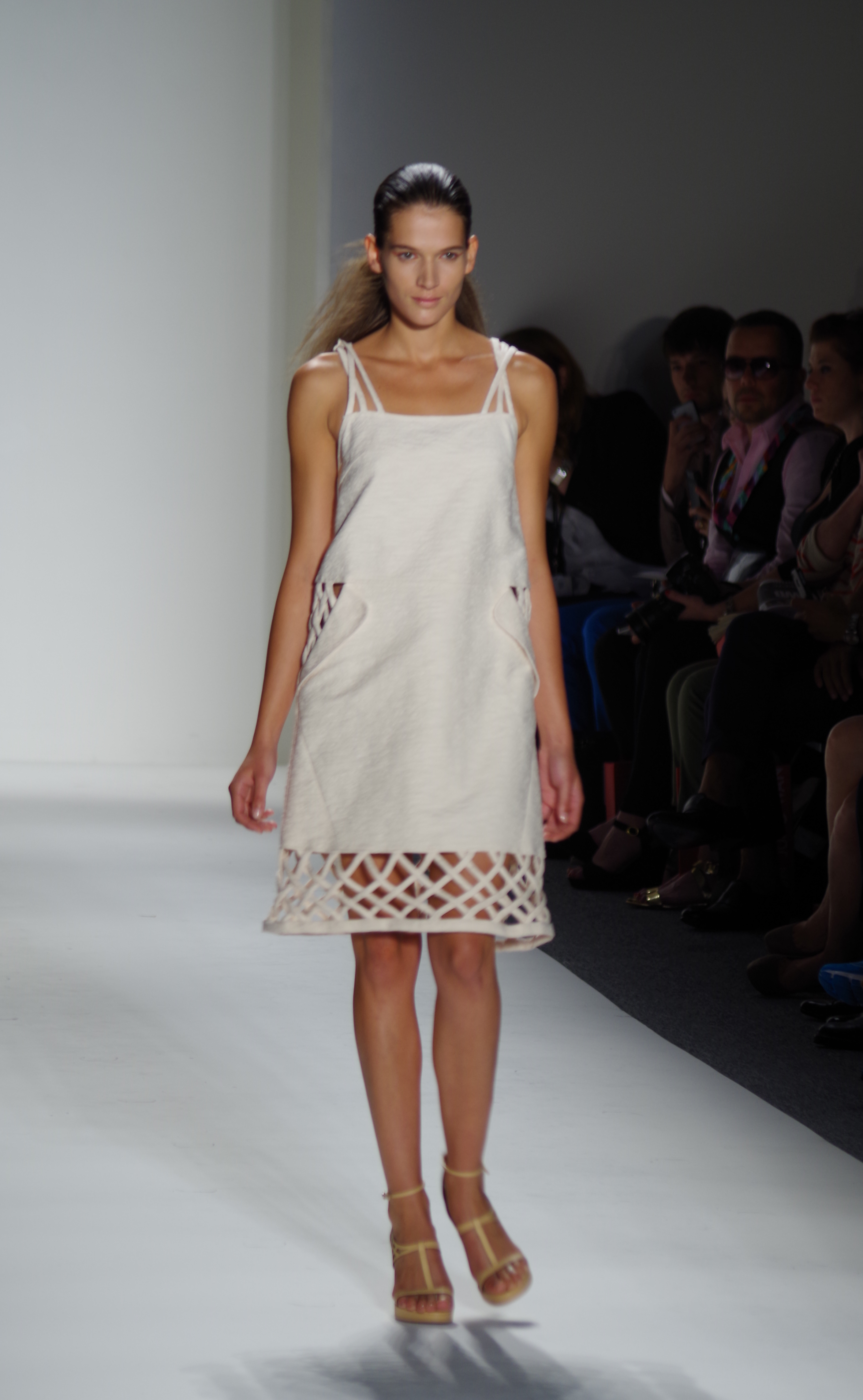Son Jung Wan nous invite au voyage avec sa collection appelée Away hommage au Maroc. Il présente une collection où minimalisme et asymétrie sont les maîtres mots. Une collection pure tel le blanc omniprésent et les quelques teintes pastels viennent égailler, une pureté qui ne fait pas oublier la féminité et la sensualité.