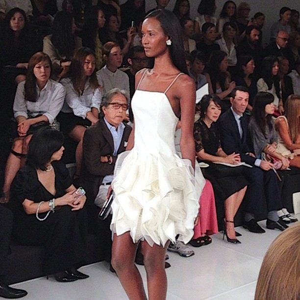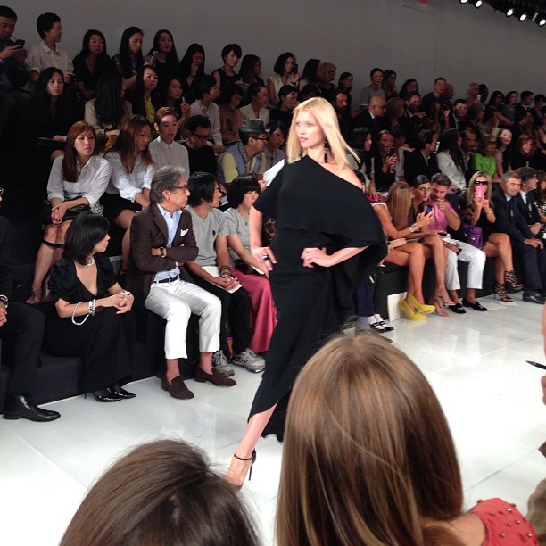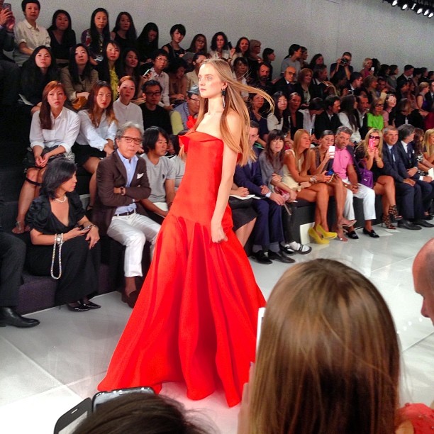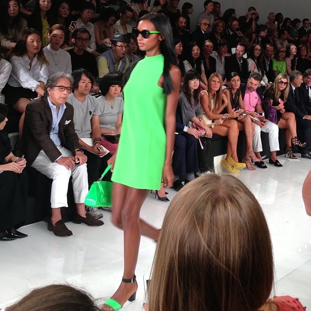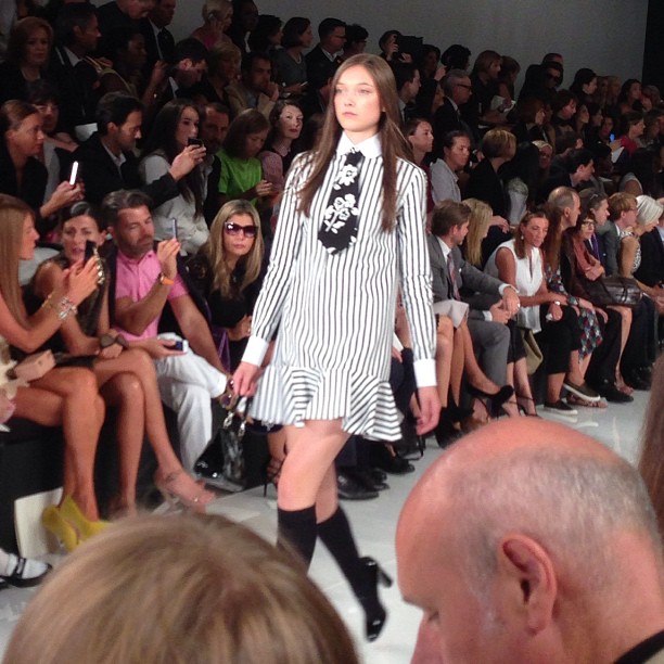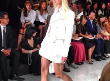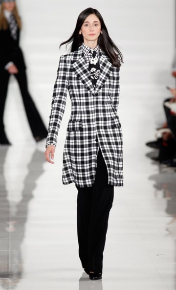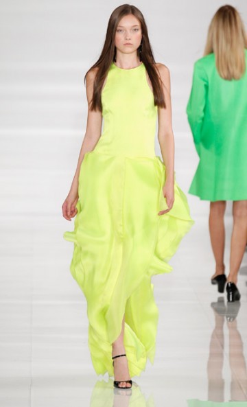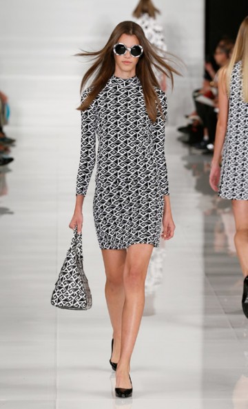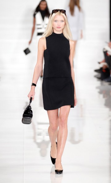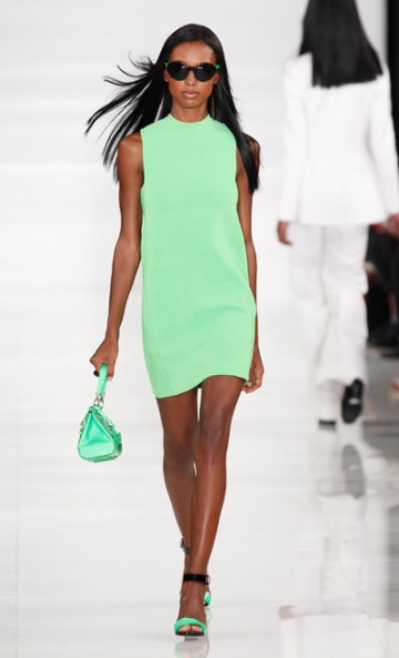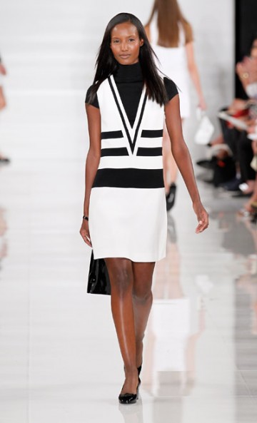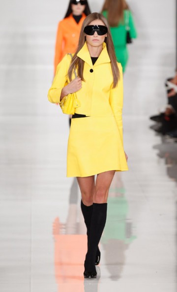 Monsieur Ralph Lauren nous propose une collection à contre courant des collections vues à New York cette saison basées sur la transparence, au contraire, Ralph Lauren propose une collection ultra féminine où les robes sont mini mini mini. Les inspirations sont 60’s, mod’s, les couleurs flashys tranchent avec des looks graphiques noir et blancs du plus bel effet. Un défilé intemporel saisissant de justesse et de beauté.
