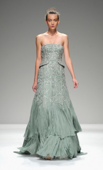 Bibhu Mohapatra a présenté une collection influencée par la danse et le mouvement. Il a donné du relief à sa collection avec des imprimés graphiques colorés et un travail sur le relief des matières.